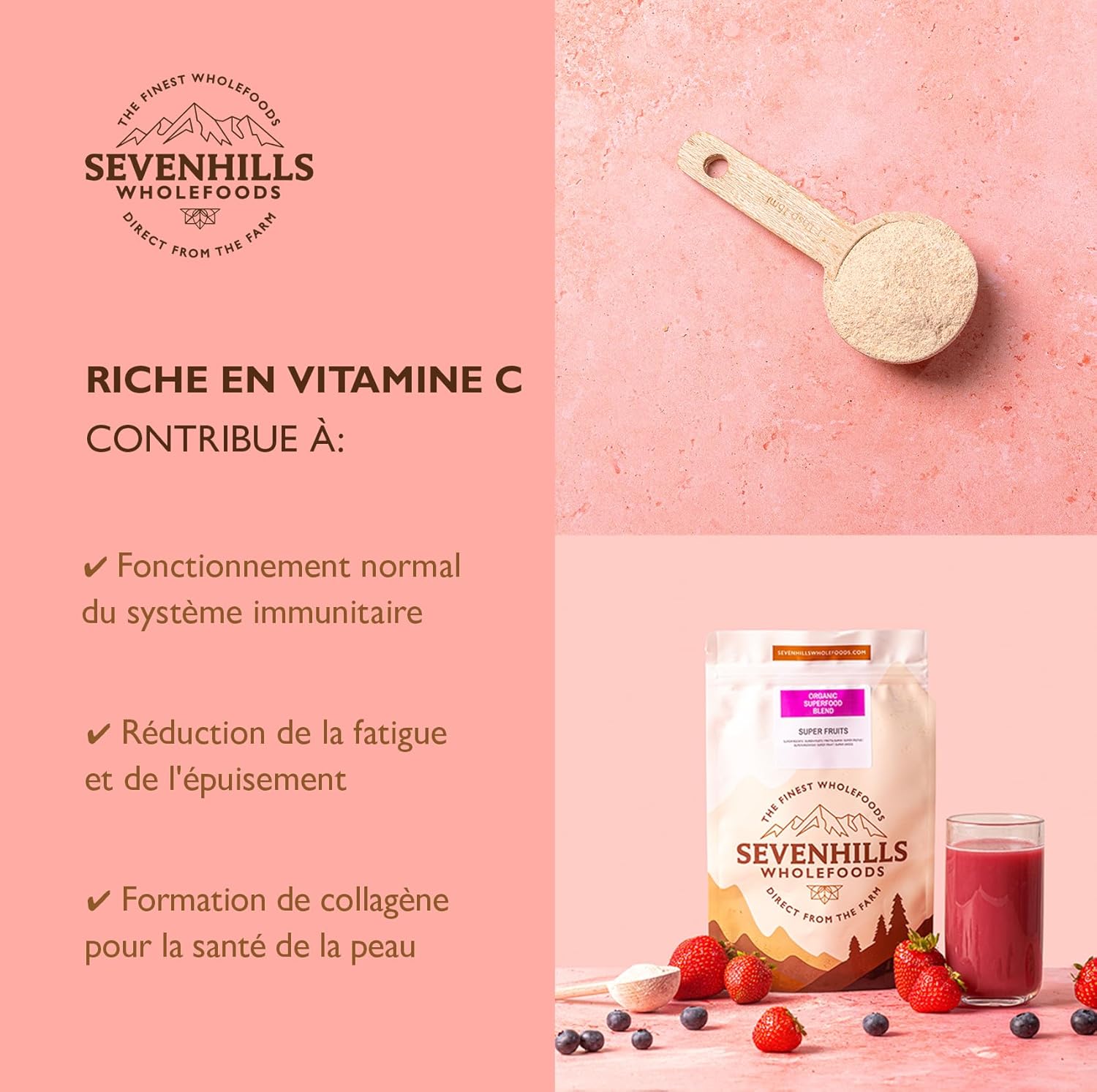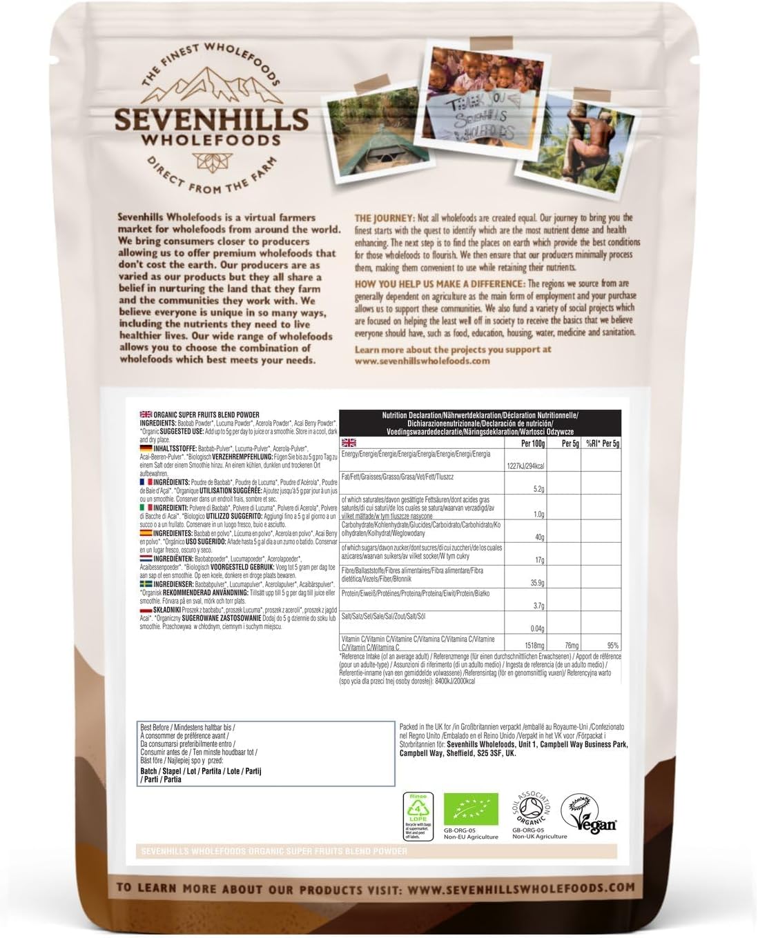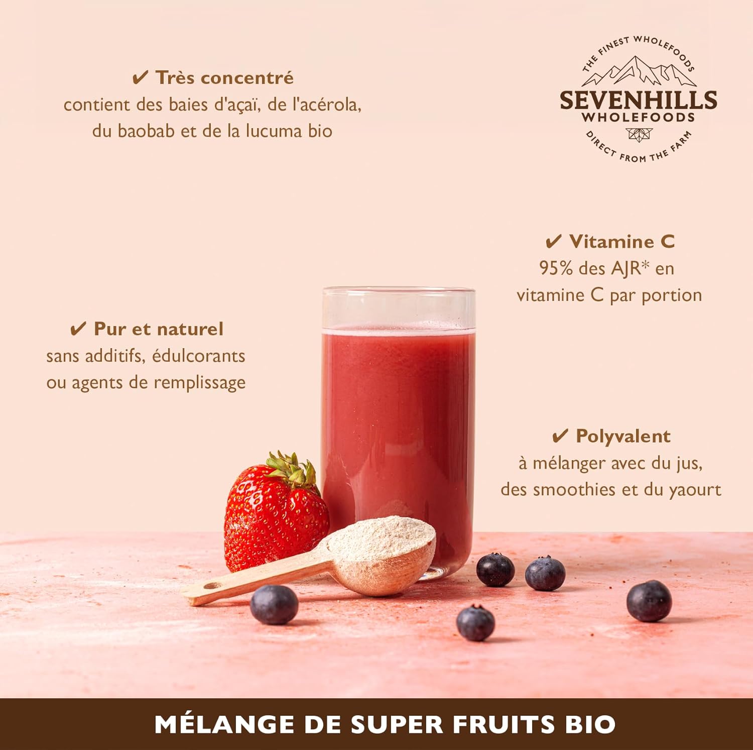 Organic Super Fruit Powder Blend with Acai, Baobab, Acerola & Lucuma, Supports Immunity & Skin Health, Reduces Fatigue, Natural Vitamin C, 150g Per Sevenhills Wholefoods