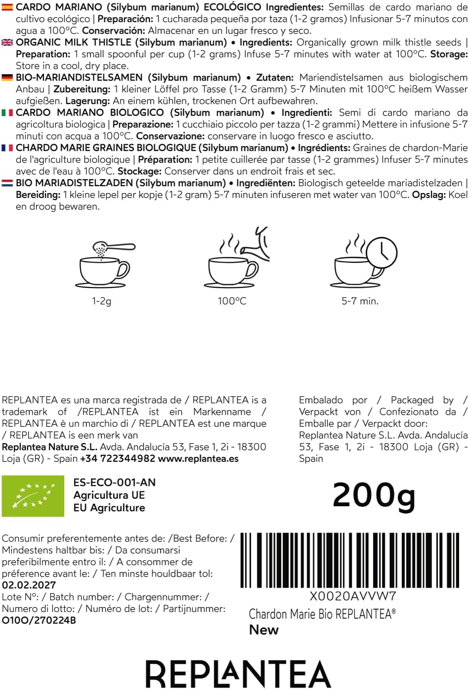 ORGANIC TEA MARIE TASAN 200g (100 Cups) | Milk Thistle Seeds | Purifying Herbal Tea for the Liver REPLANTEA