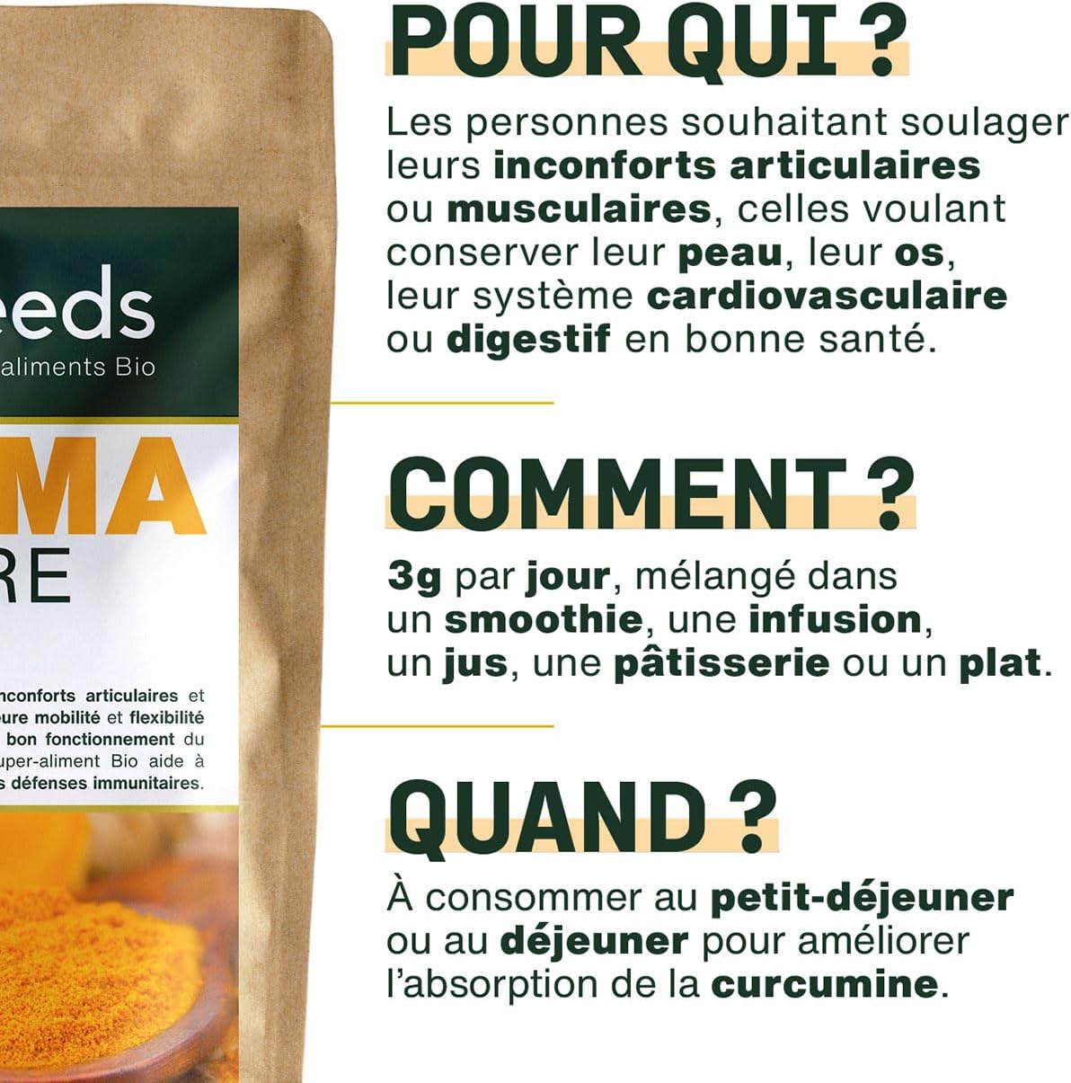 ✅ JOINTS AND MOBILITY: Our Organic Turmeric contains 3% curcumin, a powerful active ingredient that contributes to joint comfort. This will help improve mobility and flexibility of the joints, in order to reduce discomfort. By also acting on the muscles, Organic Turmeric is also very interesting in case of intense physical exertion.