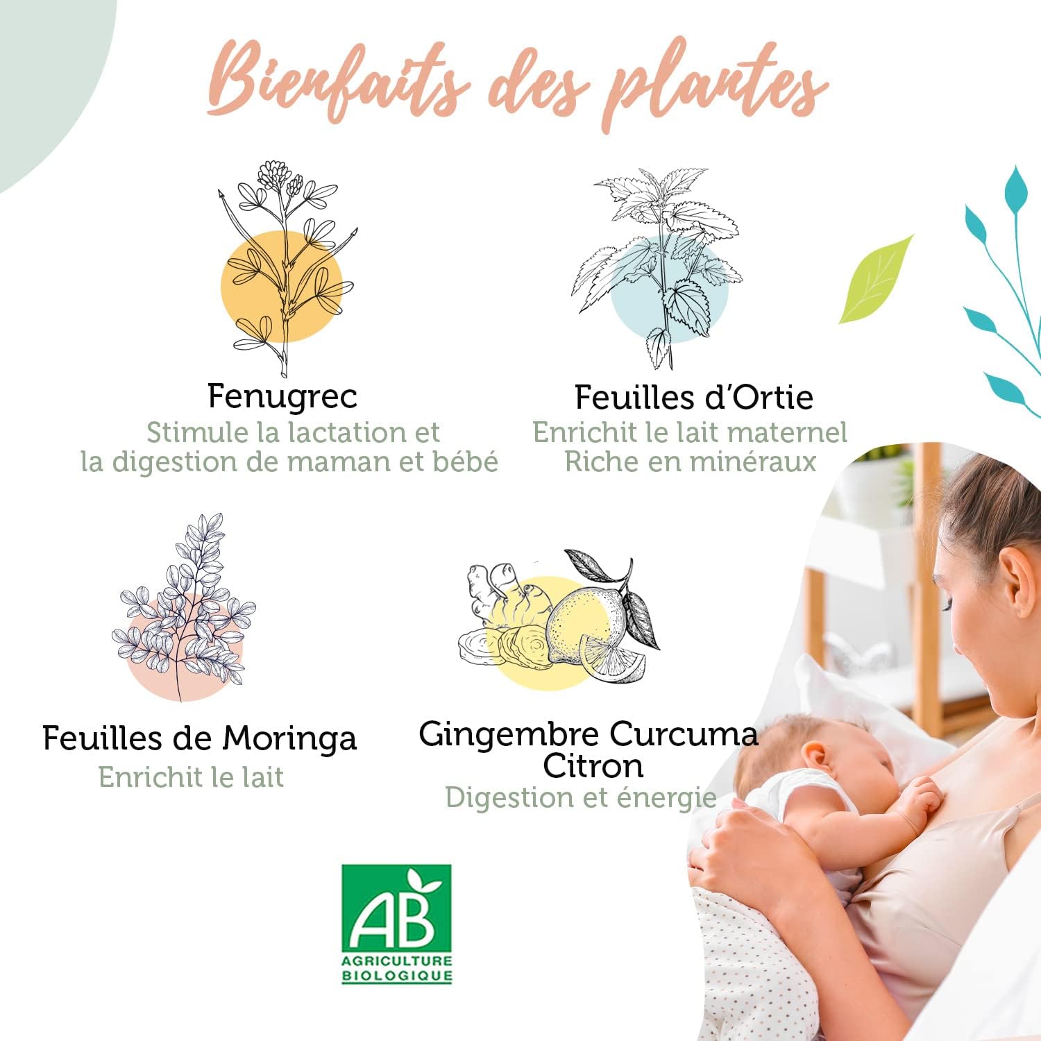 favoriser de façon naturelle la montée d’un lait de qualité chez les mamans allaitantes, diminuant ainsi indirectement les coliques du nourrissonfaciliter la digestion en évitant gaz, ballonnements et constipation