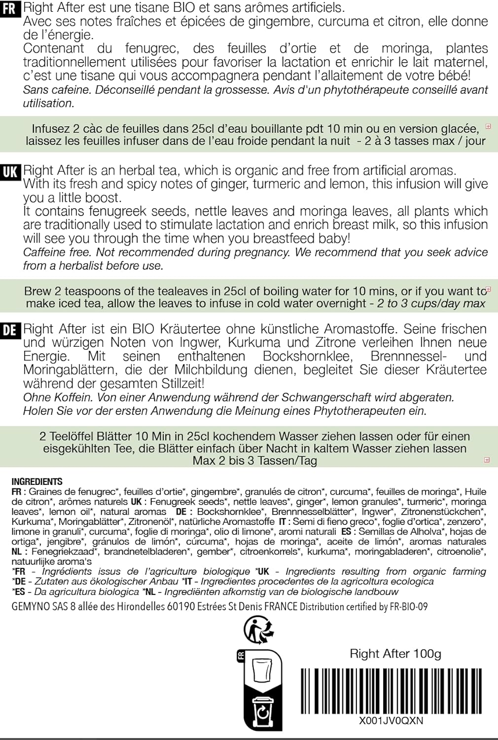 → La tisane Right After respecte la Nature, votre santé et celle de votre bébé. Pas d’inquiétude, vous pouvez la déguster en toute sérénité!