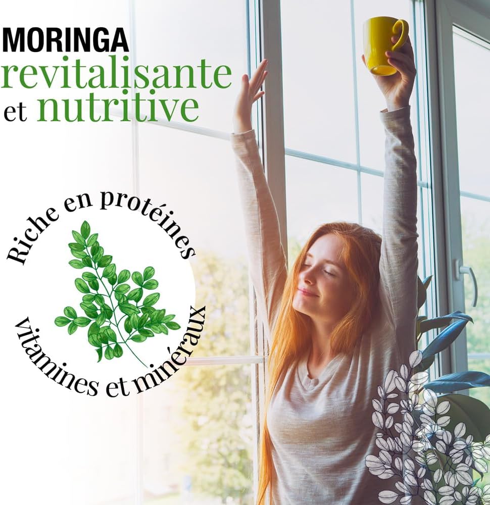 ✅ VITALITY INFUSION – Moringa leaf herbal tea is a revitalizing drink without caffeine, a real ally for people who are deficient or tired, and can be drunk at any time of the day