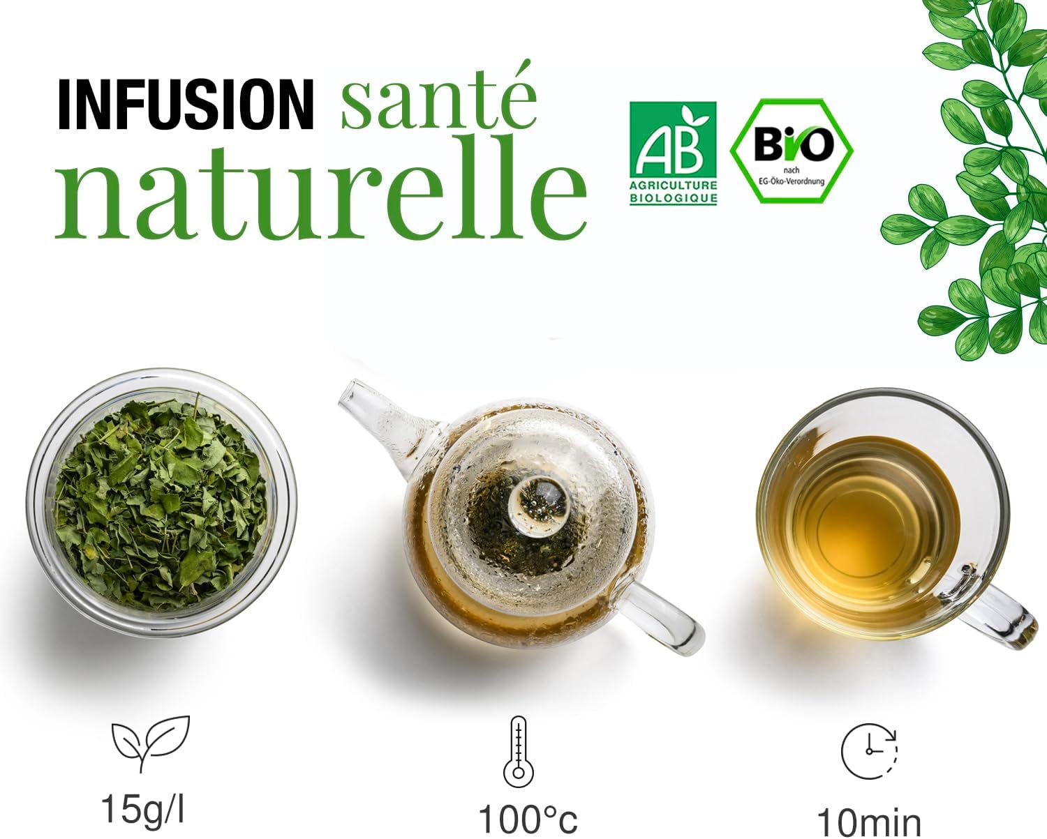 ORIGEENS ORGANIC INFUSION 100g, MORINGA DRY LEAVES The loose without theine, Revitalizing herbal tea