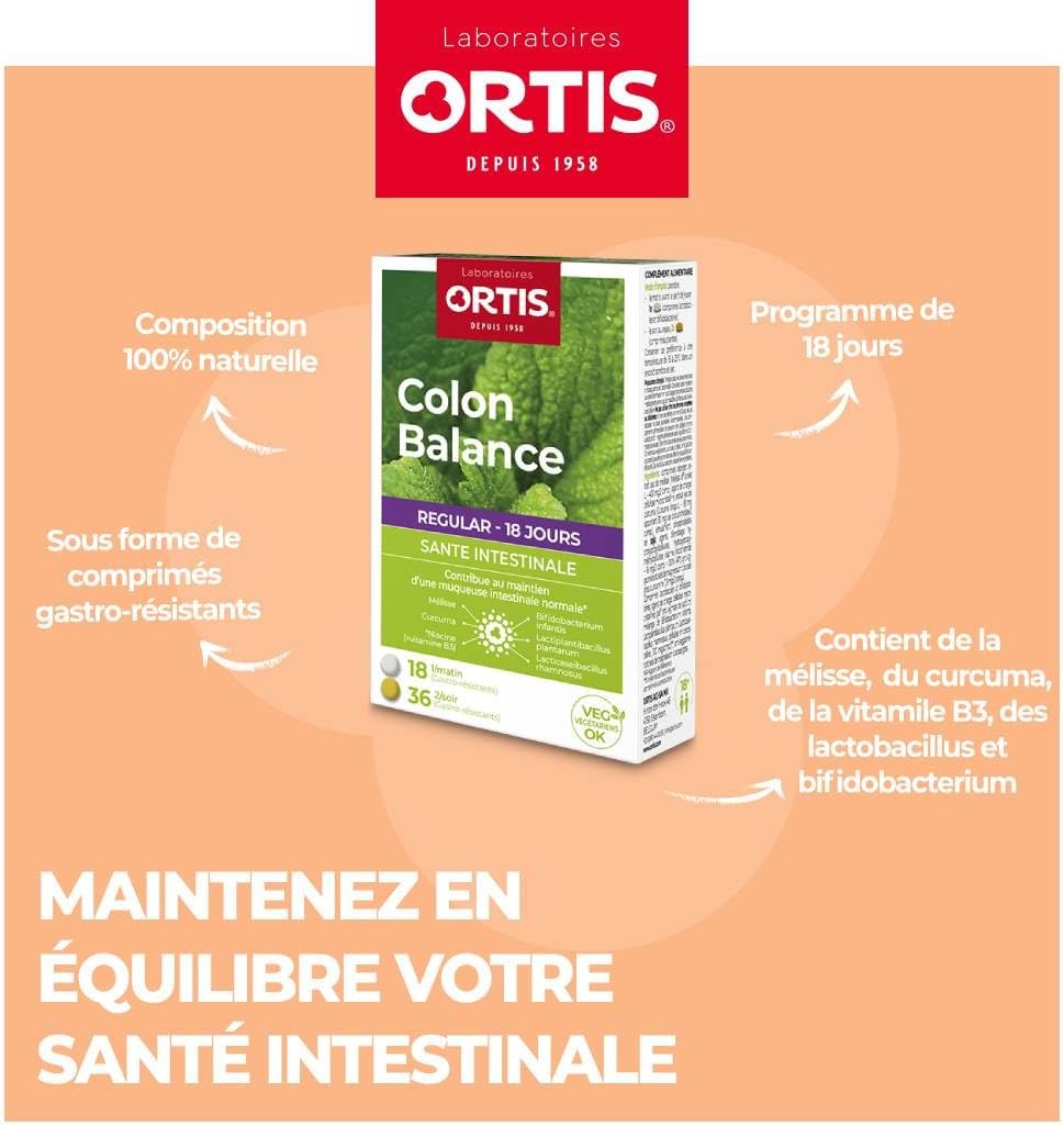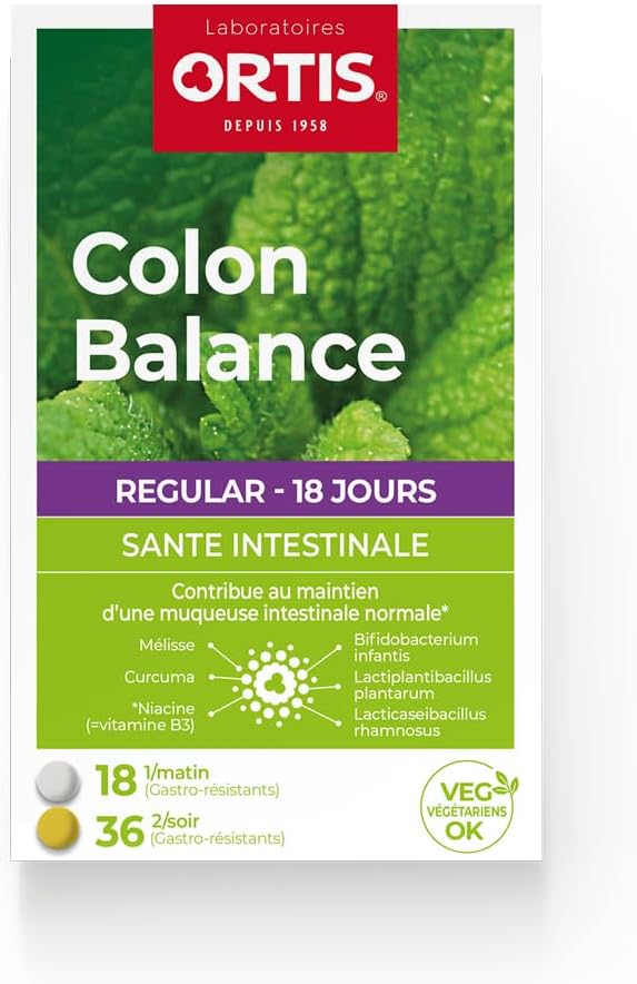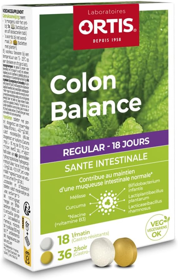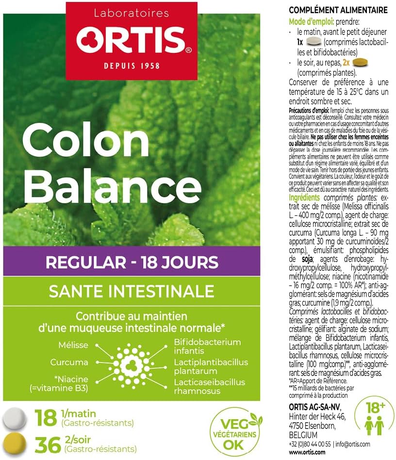 Ortis – Colon Balance Regular 54 Tablets – Food Supplement to Remedy Bloating and Flatulence – Intestinal Health – 100% Natural Lemon Balm