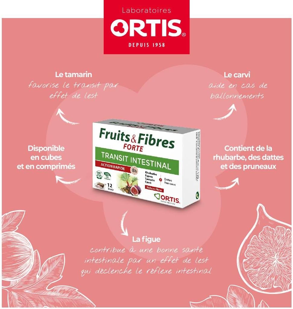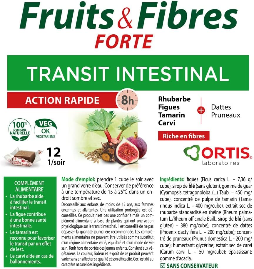 INTESTINAL COMFORT: FRUITS & FIBRES FORTE, an ideal formula to effectively remedy the occasional laziness of your intestinal transit. Its fast action (8 hours) will allow you to quickly regain intestinal comfort, safely without inflammation or irritation.