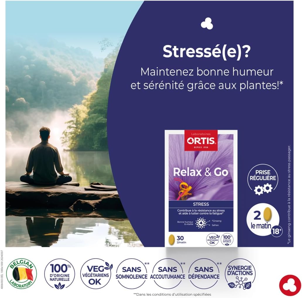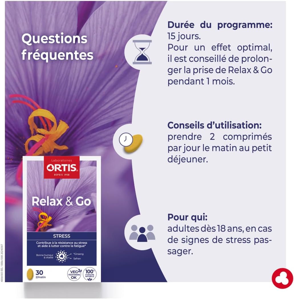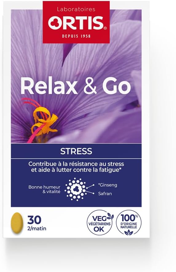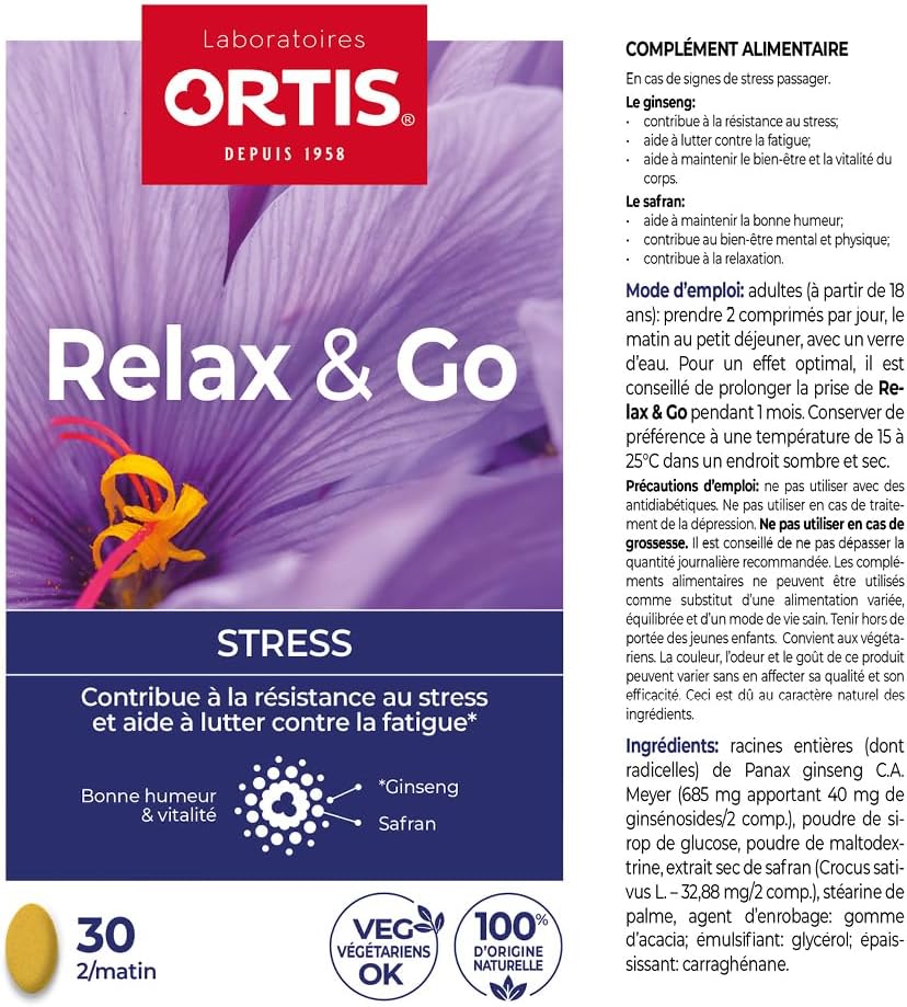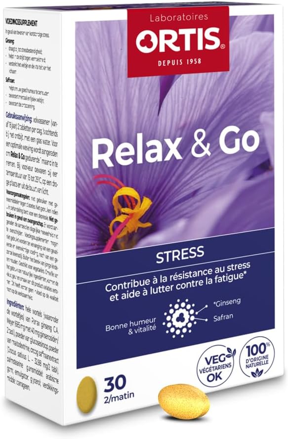 Ortis – Relax & Go 30 Tablets – Food Supplement to resist stress and fight fatigue – Maintains good mood and vitality – 100% natural based on Saffron and Ginseng