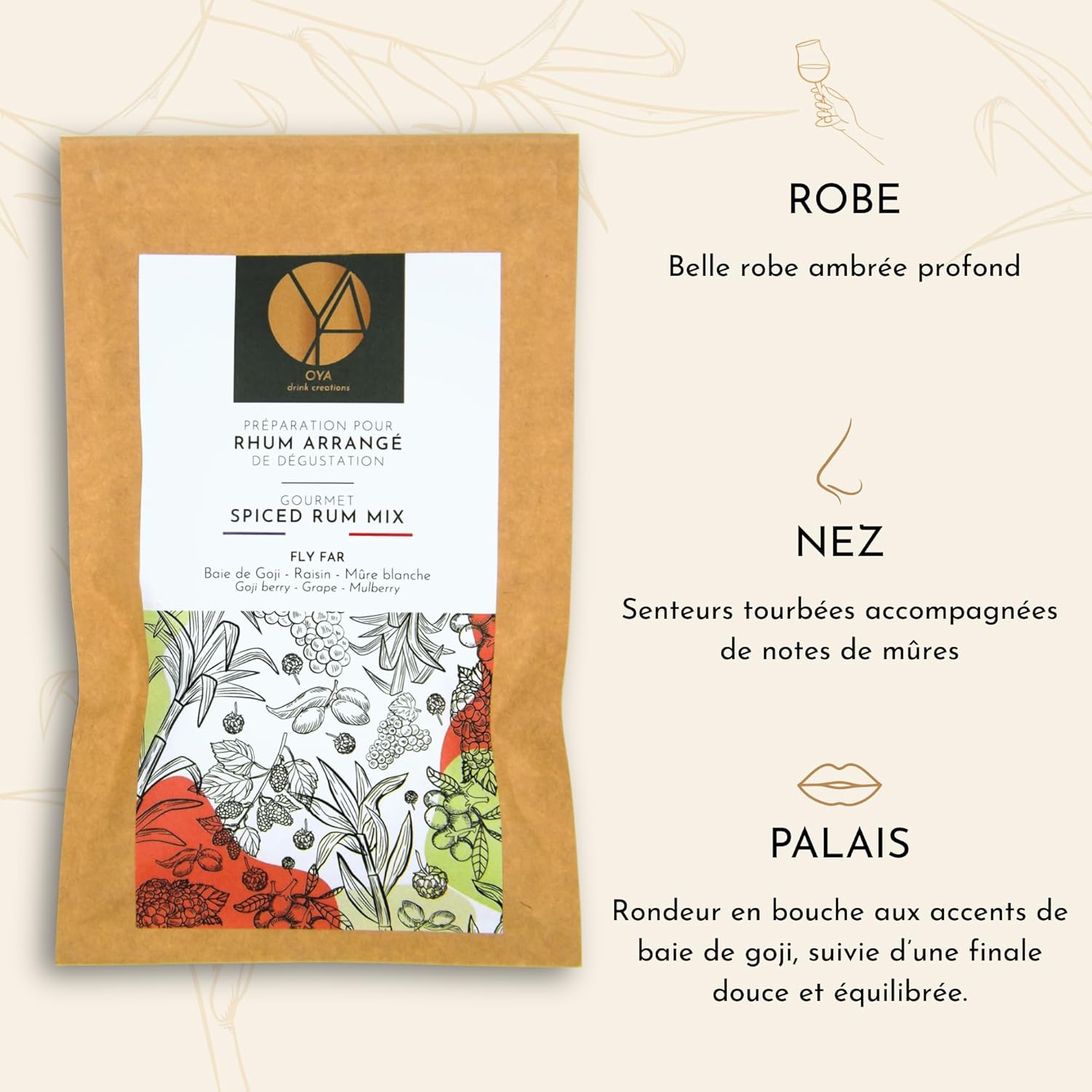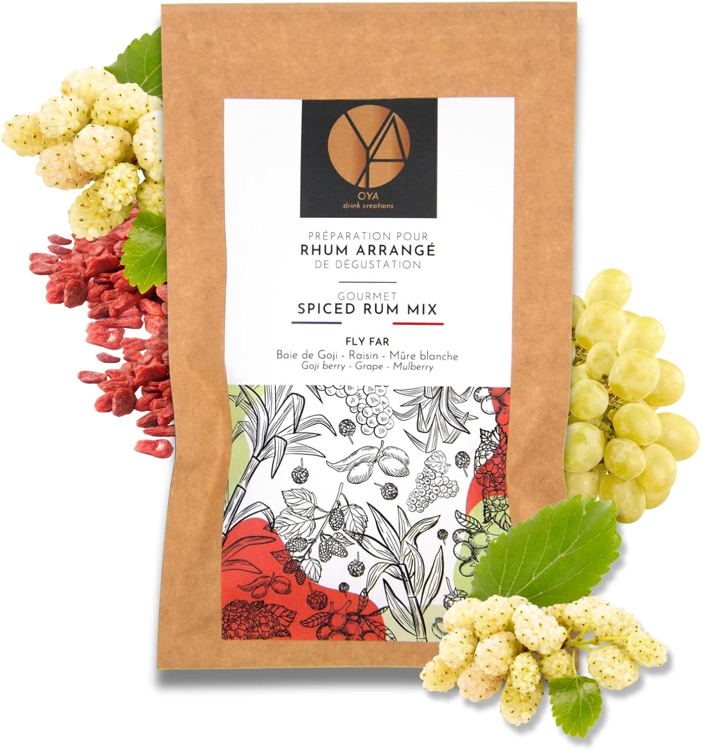 OYA FLY FAR Arranged Rum Preparation for Tasting Goji Berry, Grape, White Blackberry (for 70 cl of Rum) – Birthday Gift Idea for Father’s Day