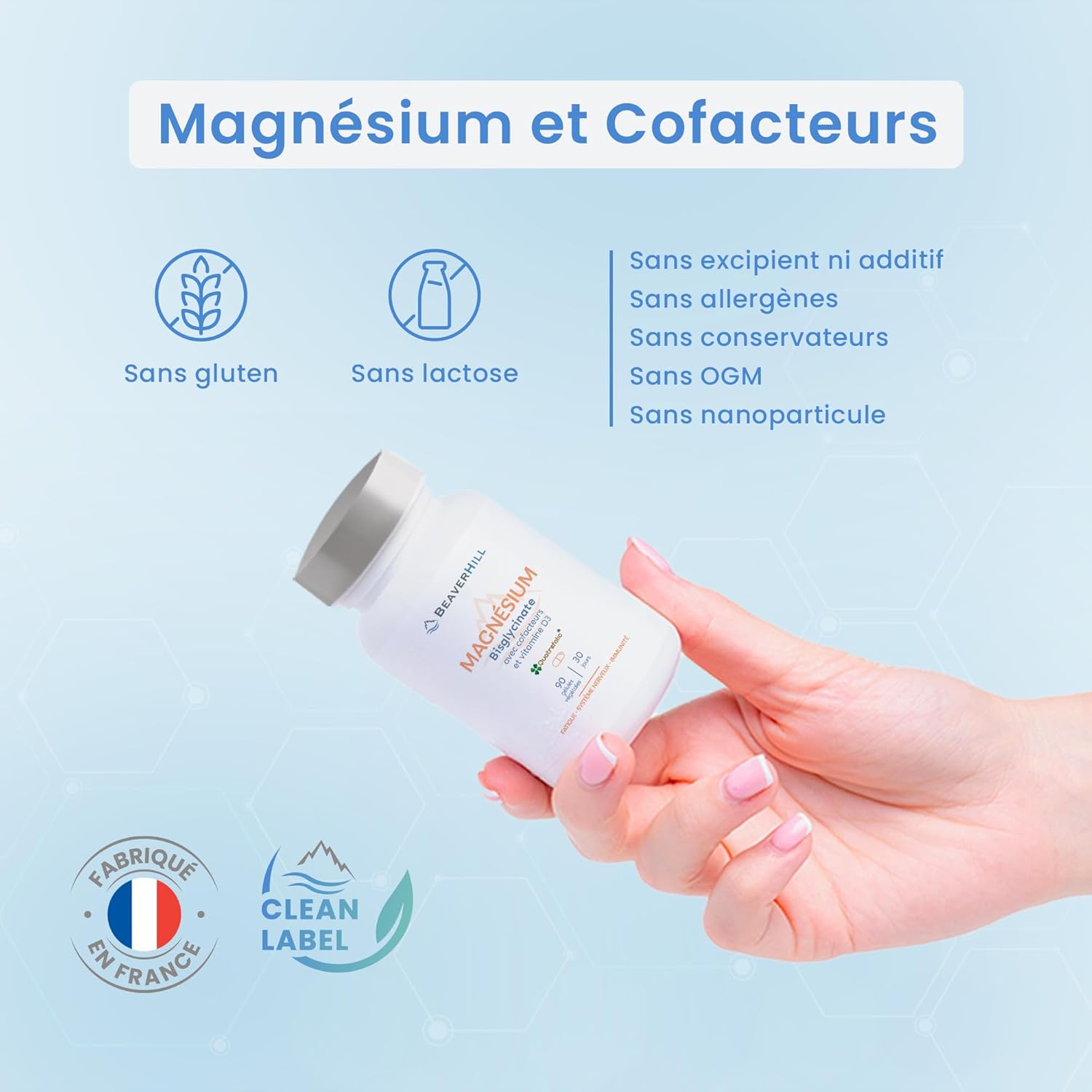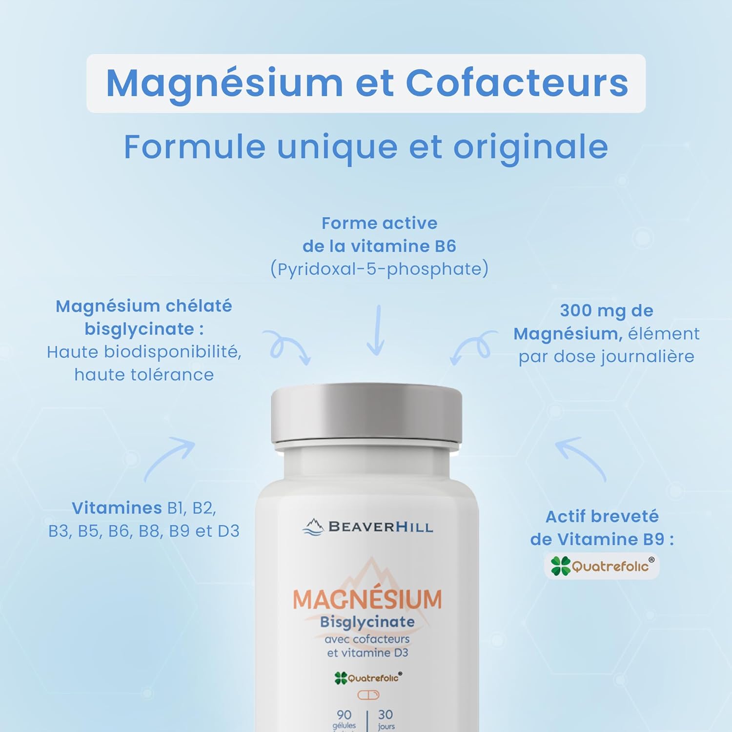 Choose confidence by opting for BEAVERHILL Magnesium Bisglycinate and Cofactors with Vitamins B1, B2, B3, B5, B6, B8, B9, and D3, your daily ally for optimal effectiveness.