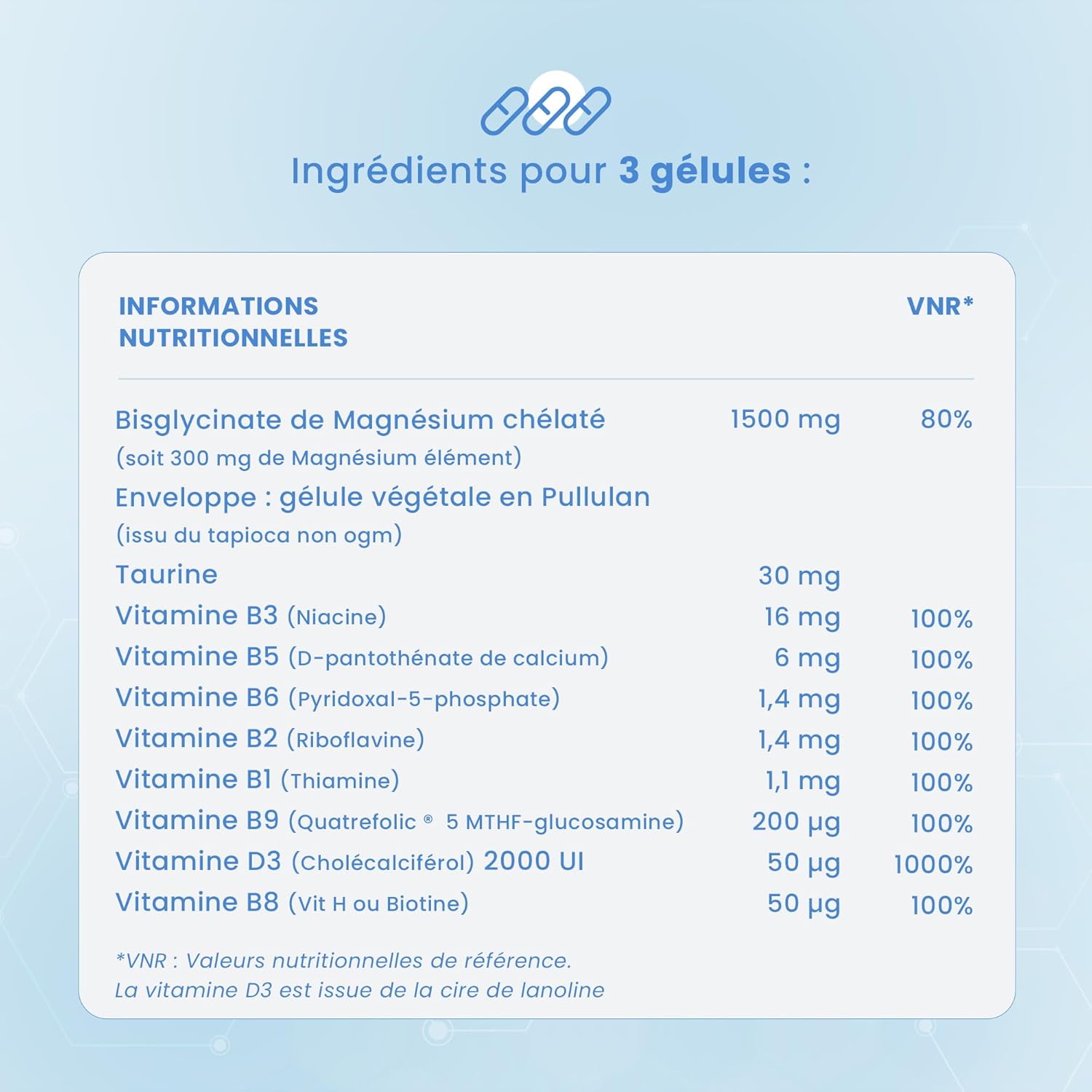 Optimal absorption and digestive tolerance: Our exclusive formula of Magnesium Bisglycinate and Cofactors with Vitamins B1, B2, B3, B5, B6, B8, B9 and D3 ensures high absorption and excellent digestive tolerance. Non-GMO tapioca pullulan vegetable capsule offers a natural alternative
