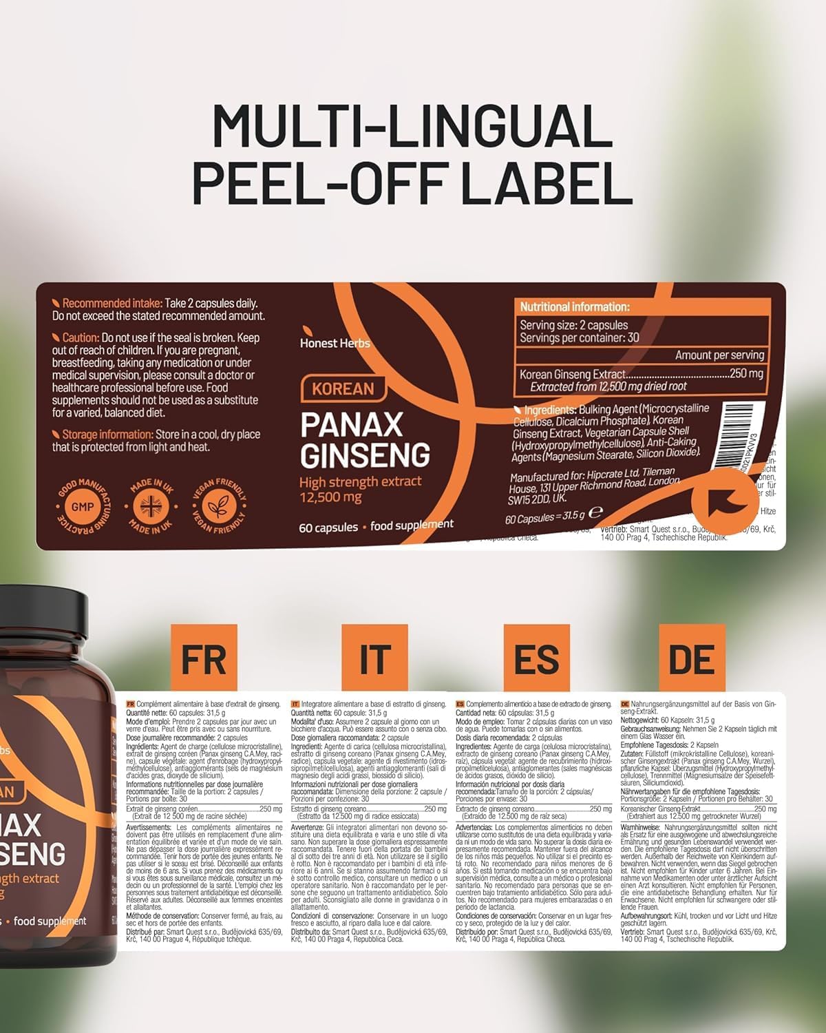 POWERFUL Korean RED GINSENG – A carefully crafted extraction process and a high standardized ginsenosides content ensure you receive all the benefits at every dose. HonestHerbs Korean Panax Ginseng Capsules are suitable for vegetarians and vegans, providing you with all the benefits of the natural plant in a convenient format.