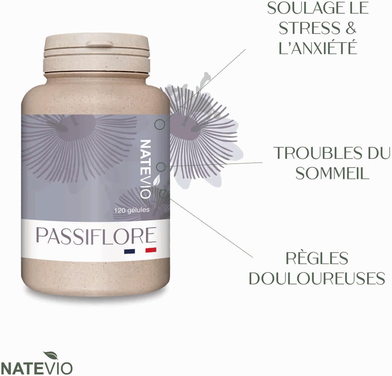 Passionflower – 120 Capsules – Sleep Aid – Relaxation – Anxiety – Natural – Made in France – Natevio – Certified Organic