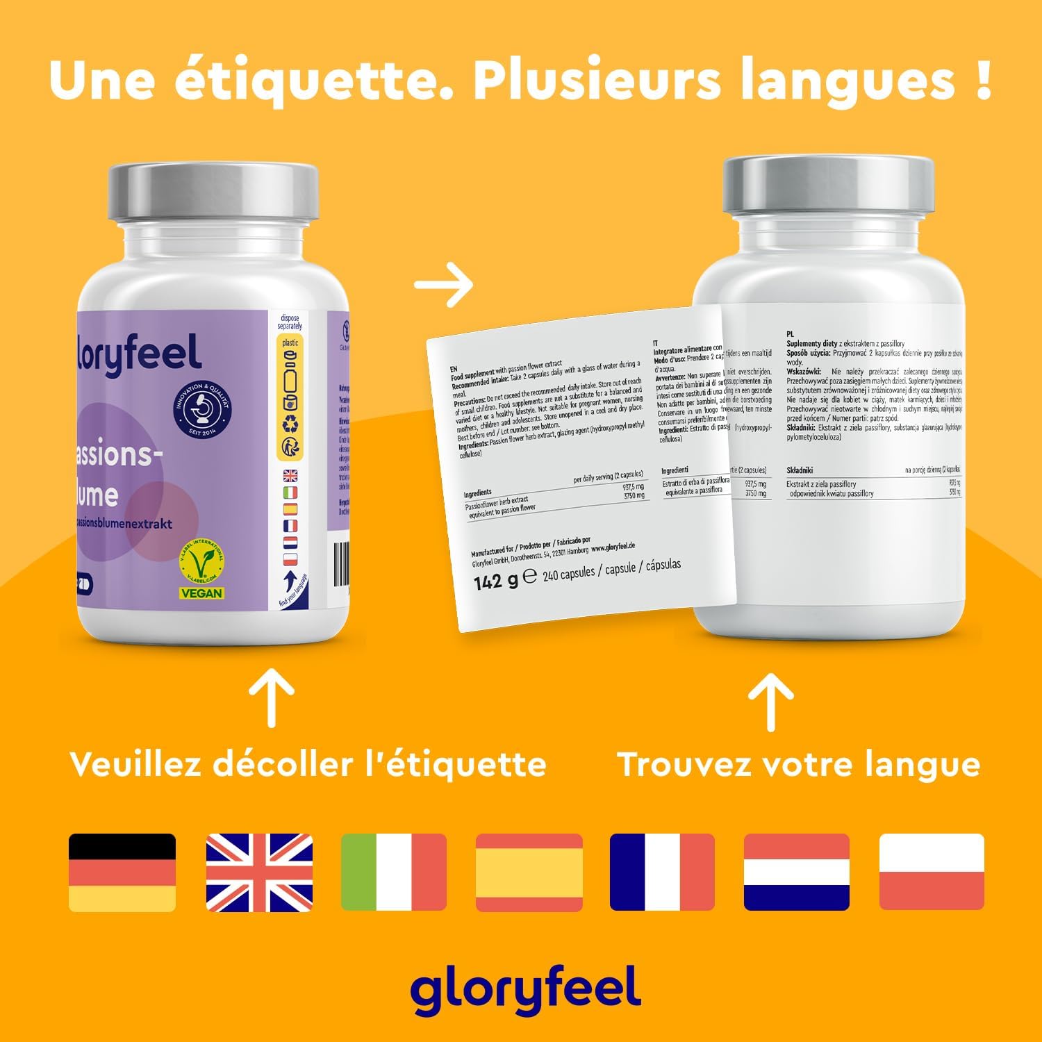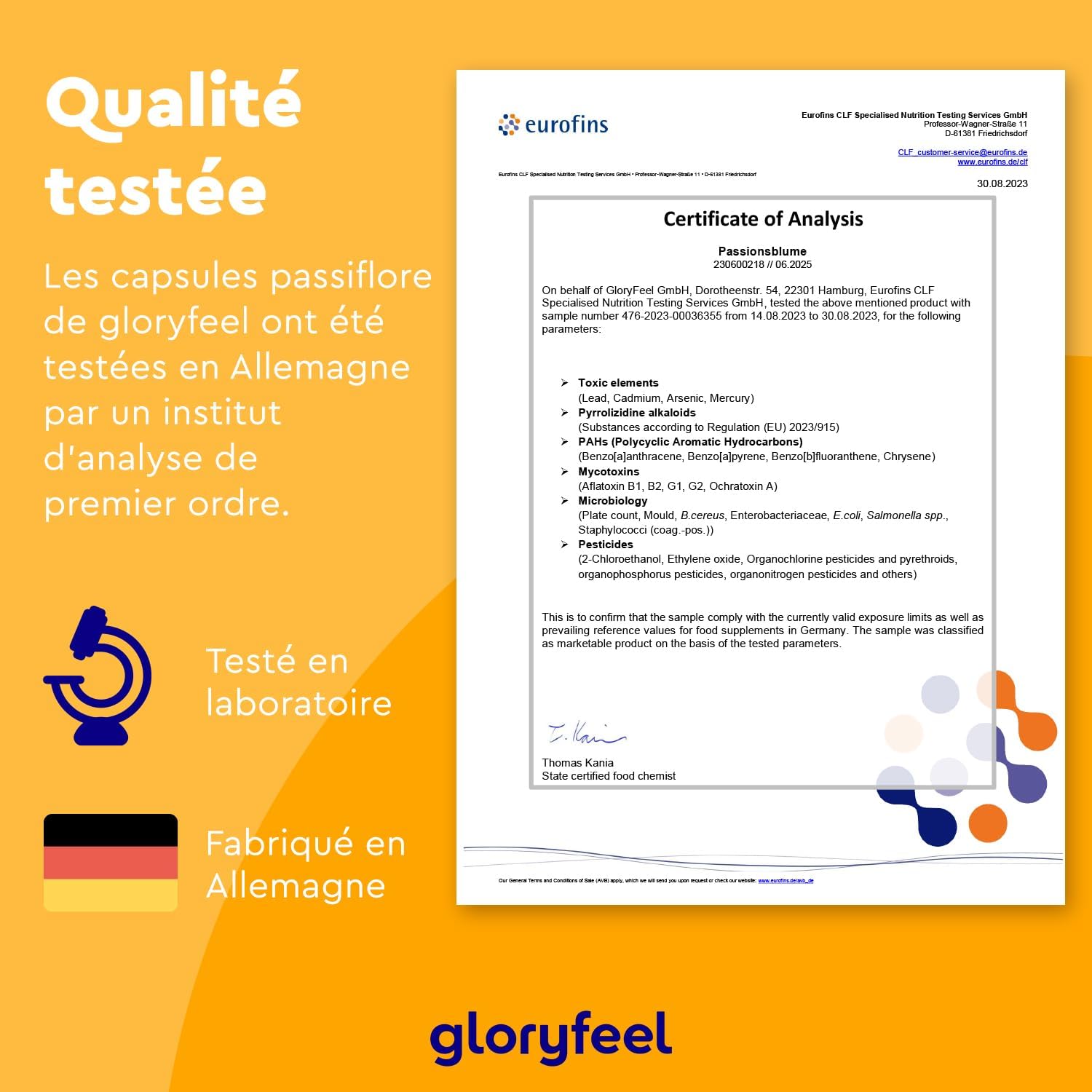 New standards of quality and stability – gloryfeel products are manufactured in Germany and undergo extensive stability tests to maintain a consistent quality over a long period of time. Our commitment to exceed industry standards underscores our leadership position in quality assurance. Discover our certificates of analysis for more transparency and trust. Keep out of reach of children and not recommended for children under 6 years old.
