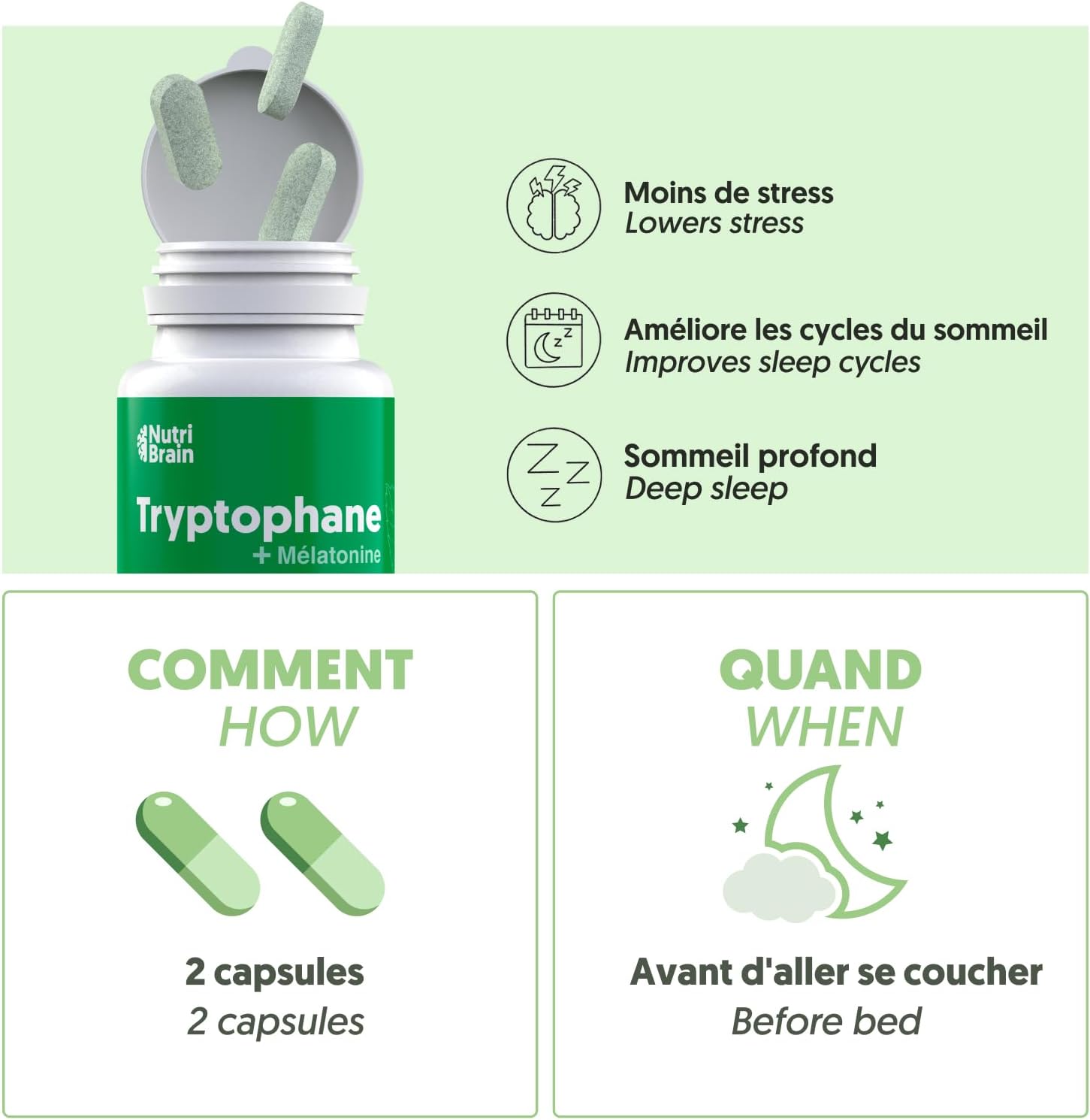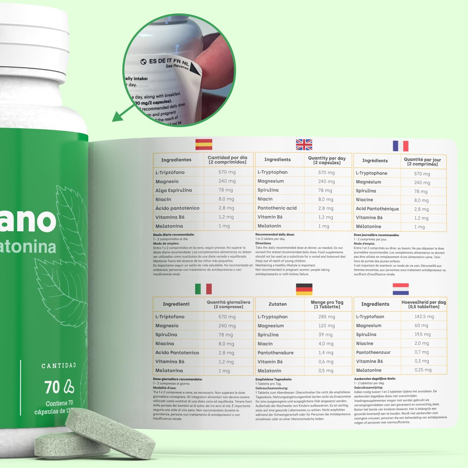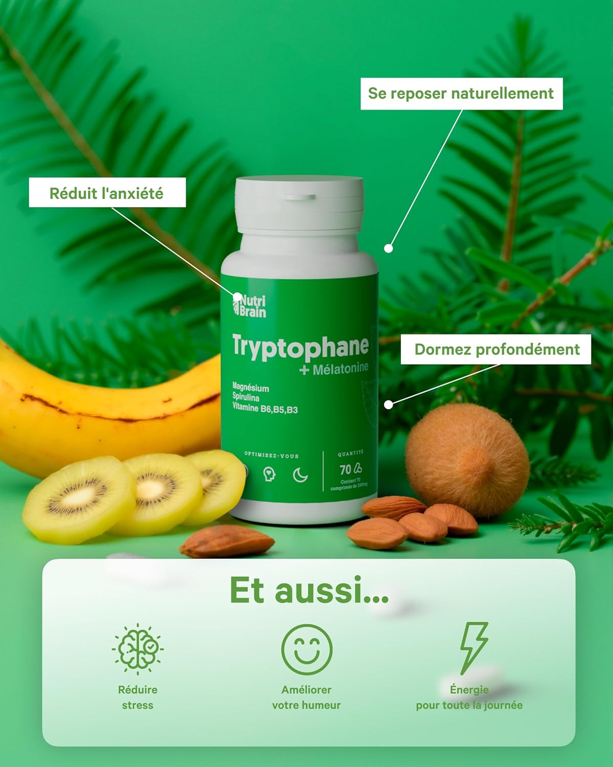 ⭐️ ANTI-STRESS: L-tryptophan is a precursor to melatonin that regulates sleep cycles, allowing deeper sleep and helping to reduce stress levels. Dietary supplement for your well-being.