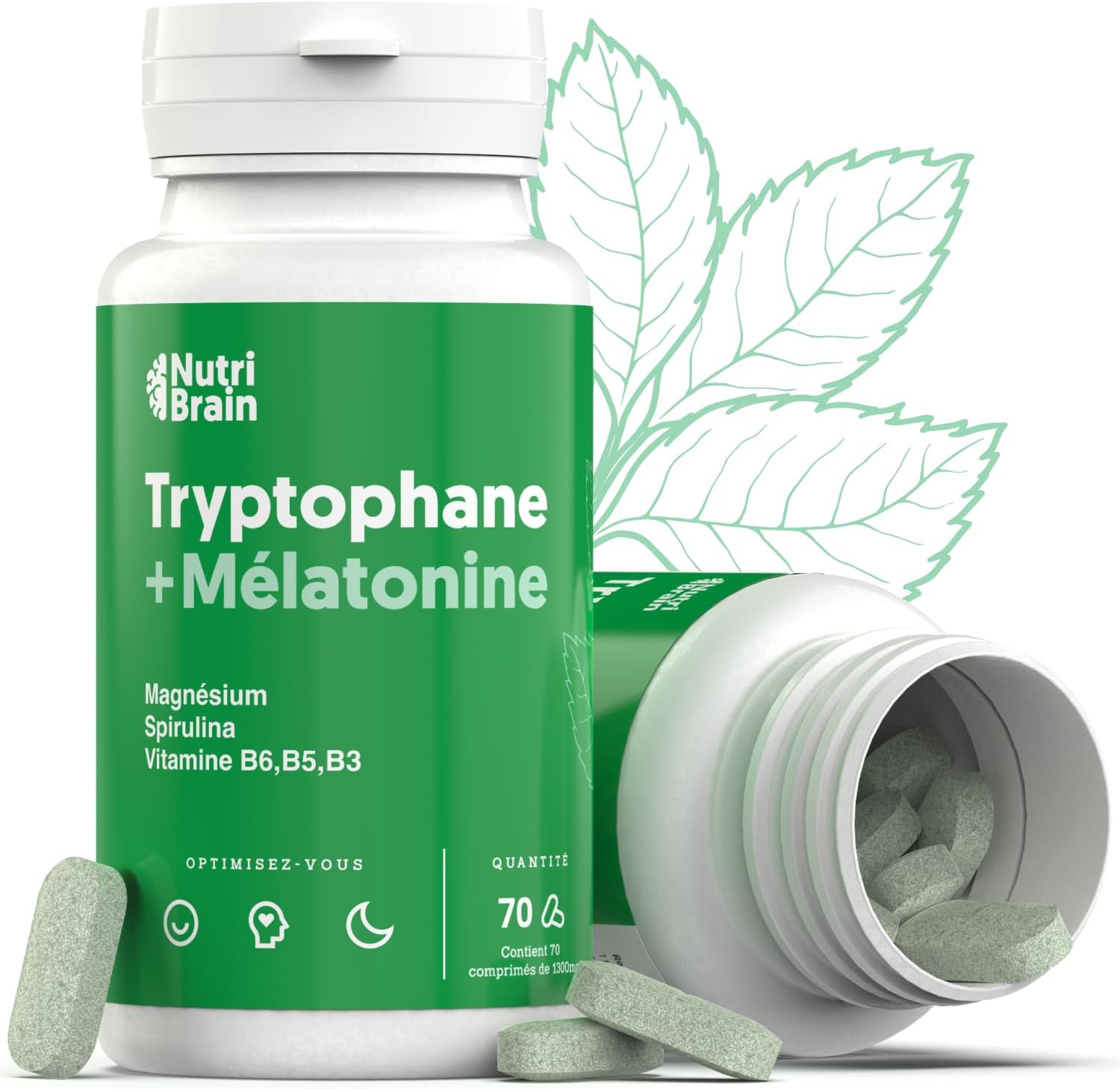 Pharmaceutical Grade Melatonin + Tryptophan | High Power Product | Perfect Sleep, Energy, Concentration, Wellness, Anxiety Reduction, Anti-Stress | With Spirulina, Lives B6, B5, B5