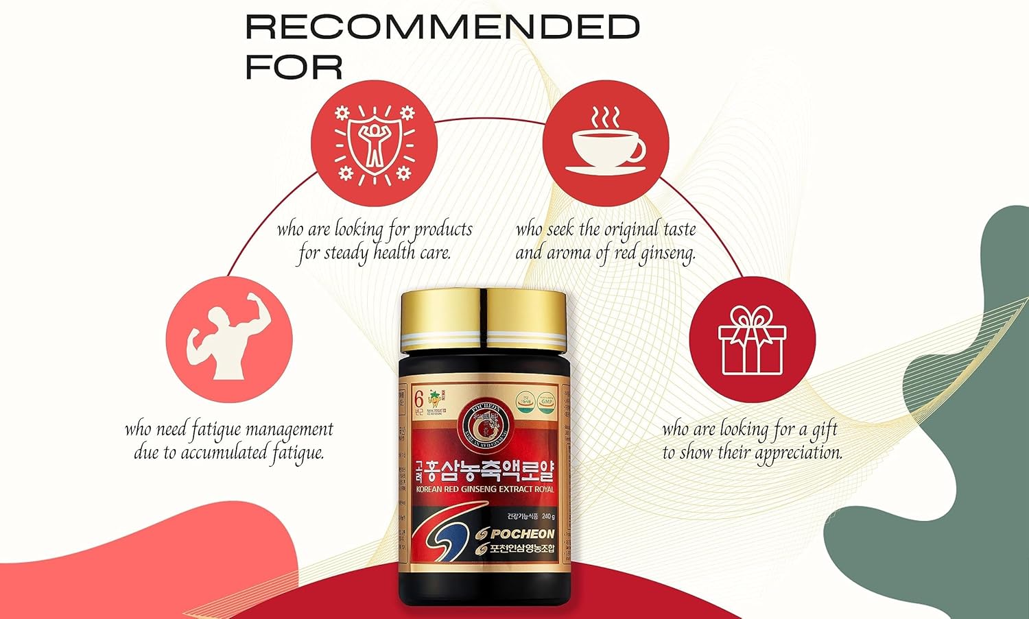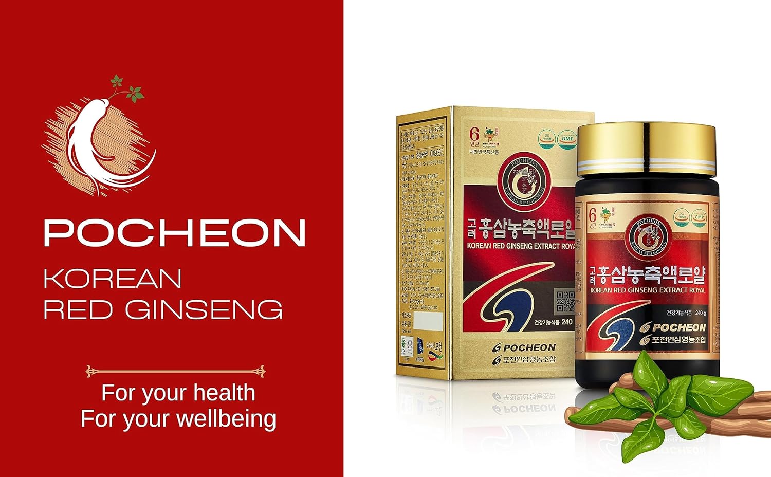 Pocheon Korean Red Ginseng Concentrated Pure Extract Royal 240g, Ginsenoside Rg1+Rb1+Rg3=6mg/g High Solid State 70% 6Years Root by Pocheon Ginseng Farmers Associate