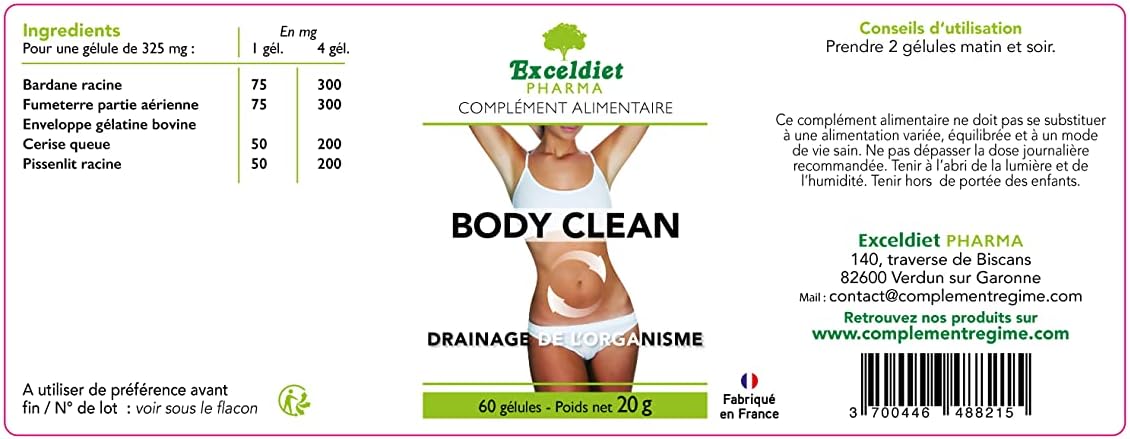 For an effective detox cure, Body Clean cleansing complex of 4 plants renowned for their draining, diuretic and digestive actions. The detoxifying effect of this combination of plants helps your body cleanse itself from the inside.