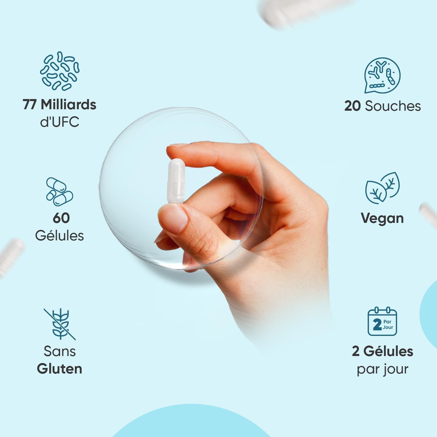 Prebiotic and Probiotic 77 Billion CFUs with 20 Strains, Probiotics and Prebiotics Lactobacillus Gasseri, Lactobacillus Rhamnosus, Bifidobacterium, Inulin, FOS, 60 Vegan Gluten Free Capsules