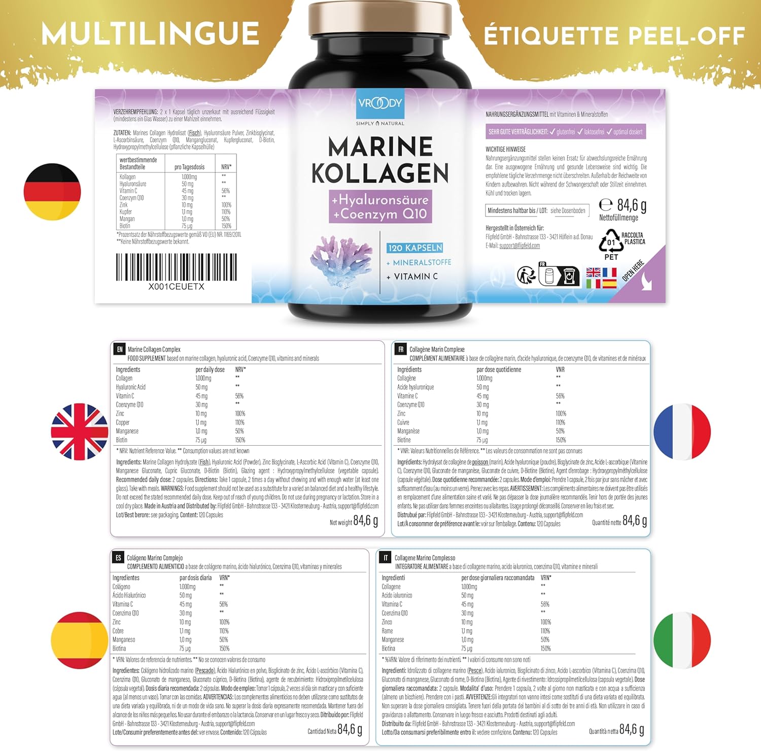 MADE IN AUSTRIA: Highly dosed premium collagen complex, developed with the utmost care by our nutritionist Michaela.