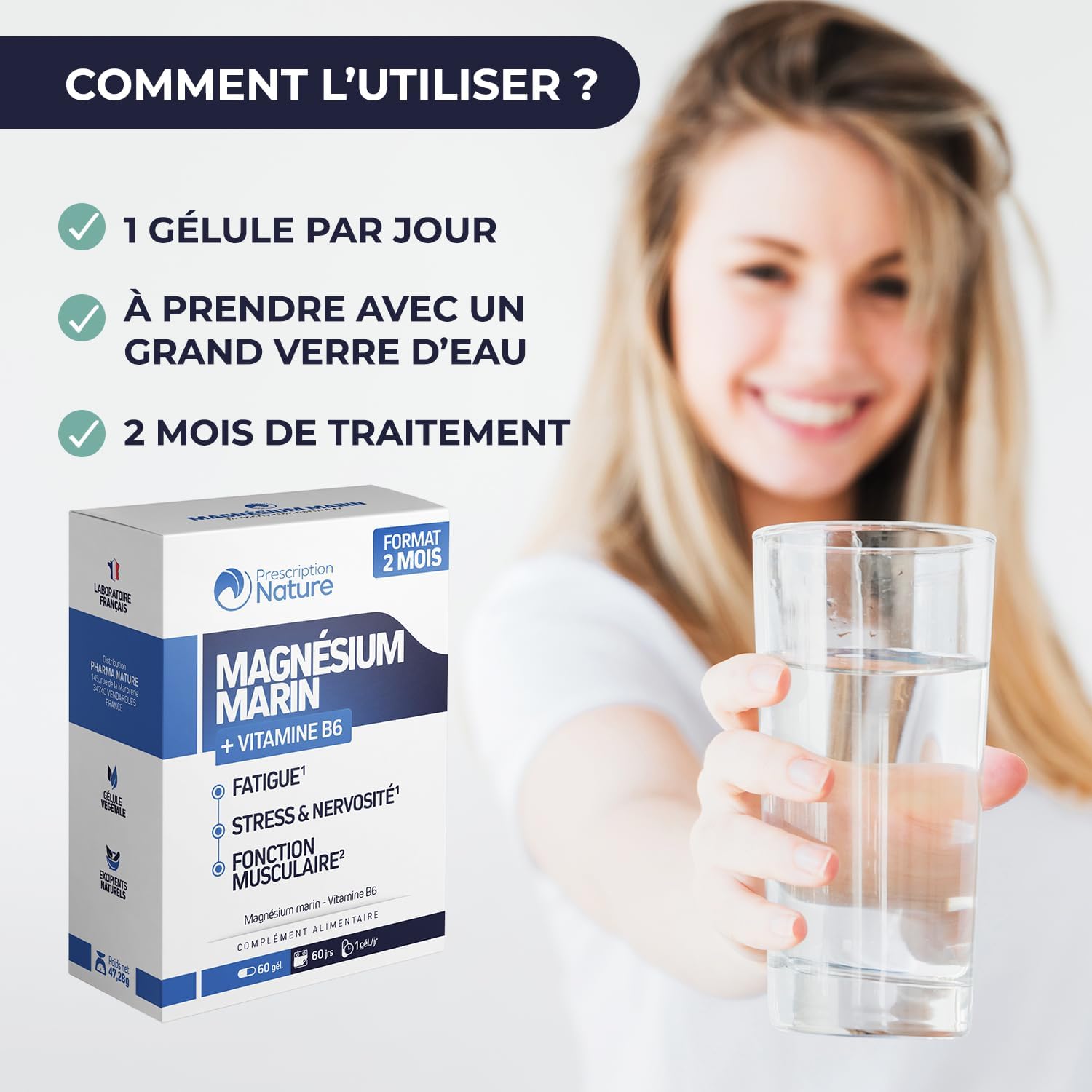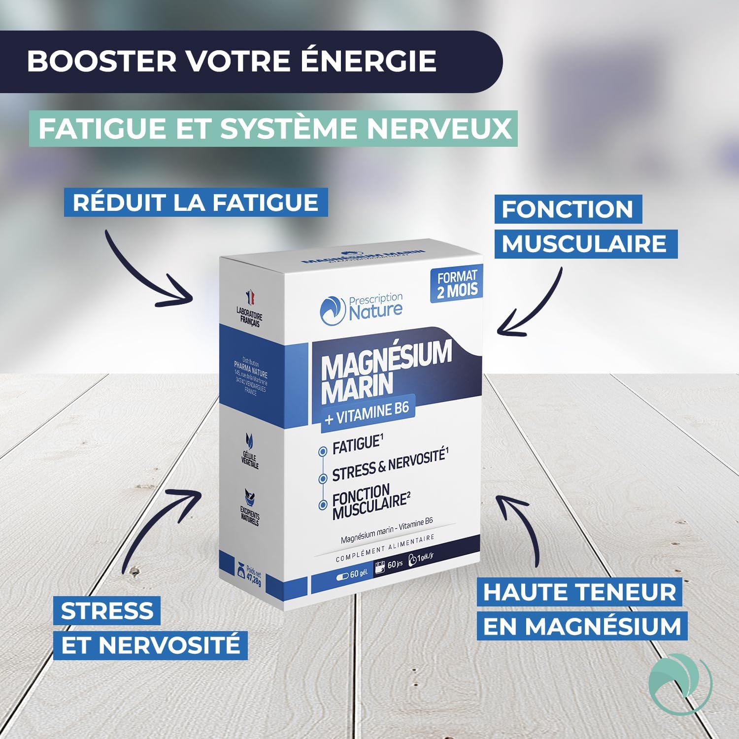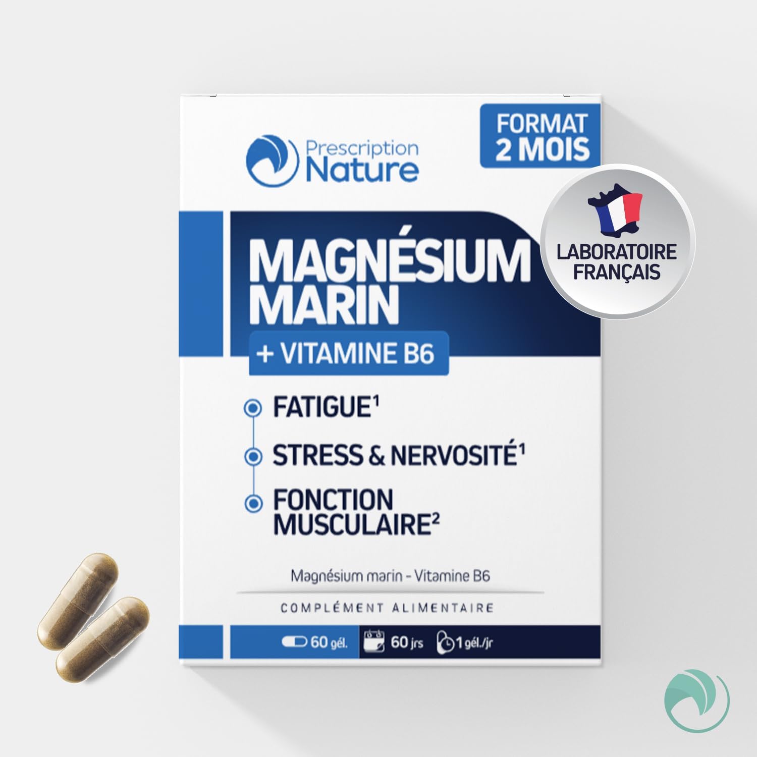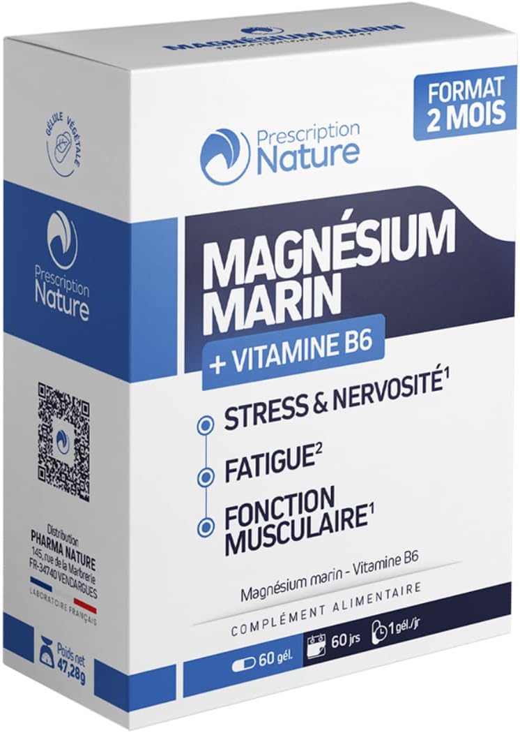 Prescription Nature – MARINE MAGNESIUM – Food Supplement, Fatigue and Nervous System – Marine Magnesium, Vitamin B6 – Made in France – 60 Capsules