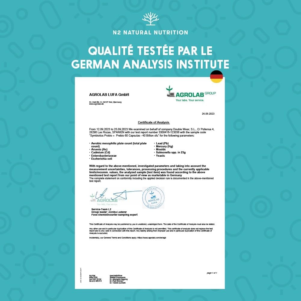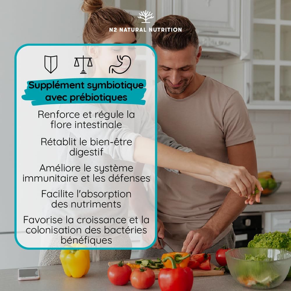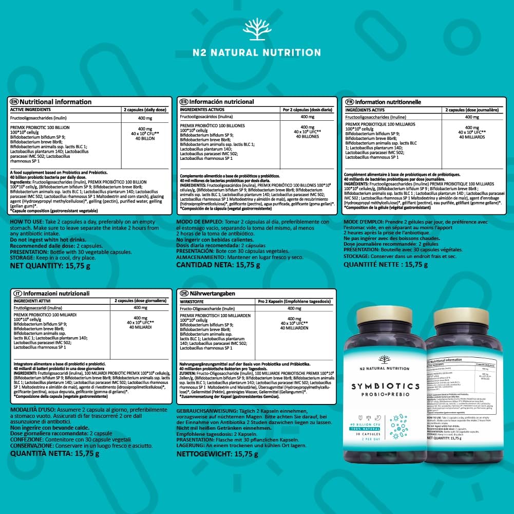 Full spectrum mix: N2 Natural Nutrition supplements contain bifidobacterium, acidophilus, digestive enzymes, lactobacillus rhamnosus LR06, lactobacillus paracasei LPC00, lactobacillus plantarum LP09, being one of the most complete bacterial complex on the market to date, consisting of 6 strains and ingredients of Professional quality. In addition, bacteria help to achieve the balance of our organism, for a healthy life.