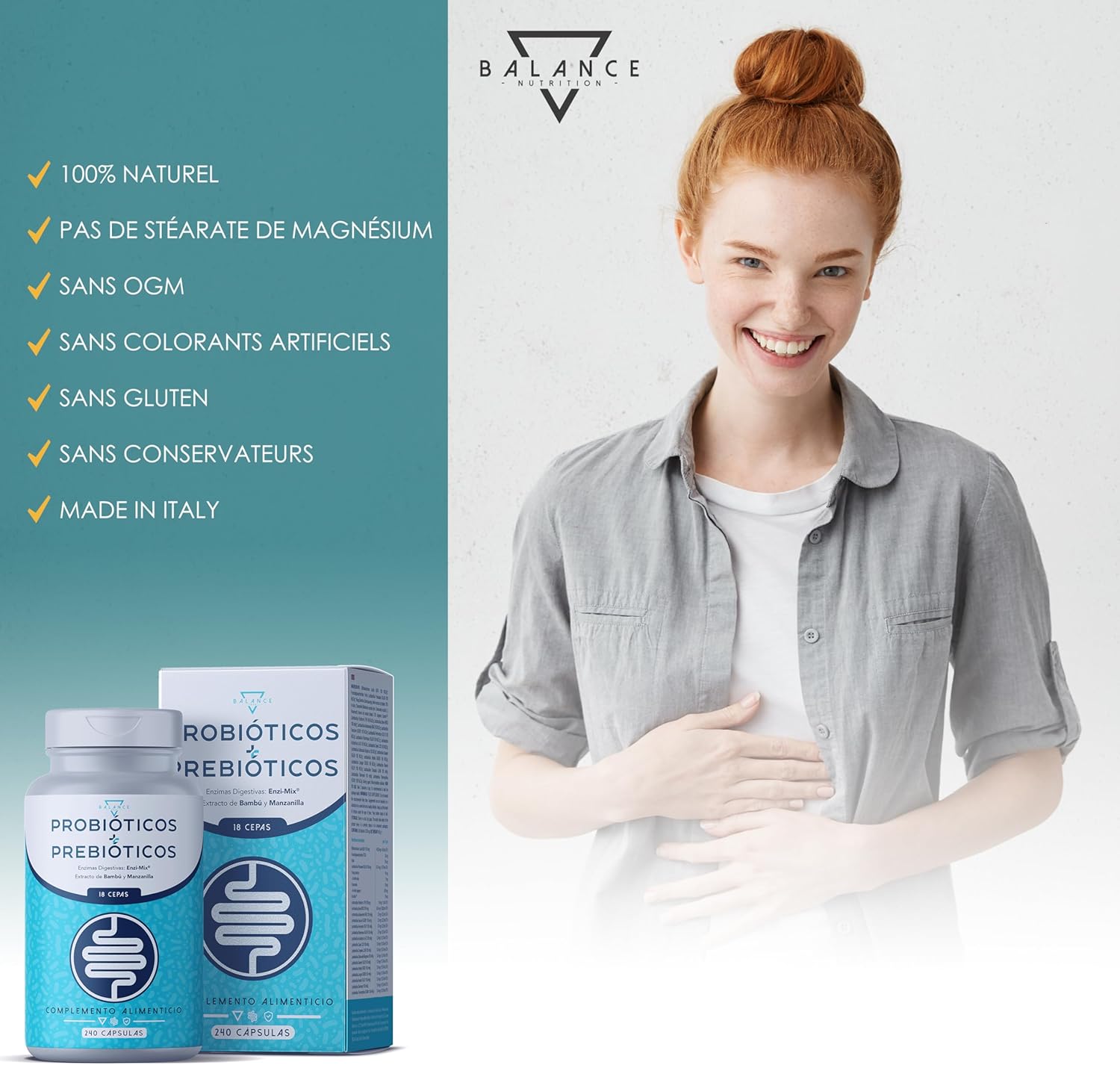 🍁 RICH IN DIGESTIVE ENZYMS, BAMBOO AND CAMOMILE: Discover Probiotics + Prebiotics – Balance Nutrition, the ideal solution for your gastrointestinal comfort. Thanks to its Enzi-Mix complex (including amylase, protease, and more) it promotes healthy digestion. Bamboo and chamomile extracts help reduce gas and bloating, for a happier gut and a more serene life!