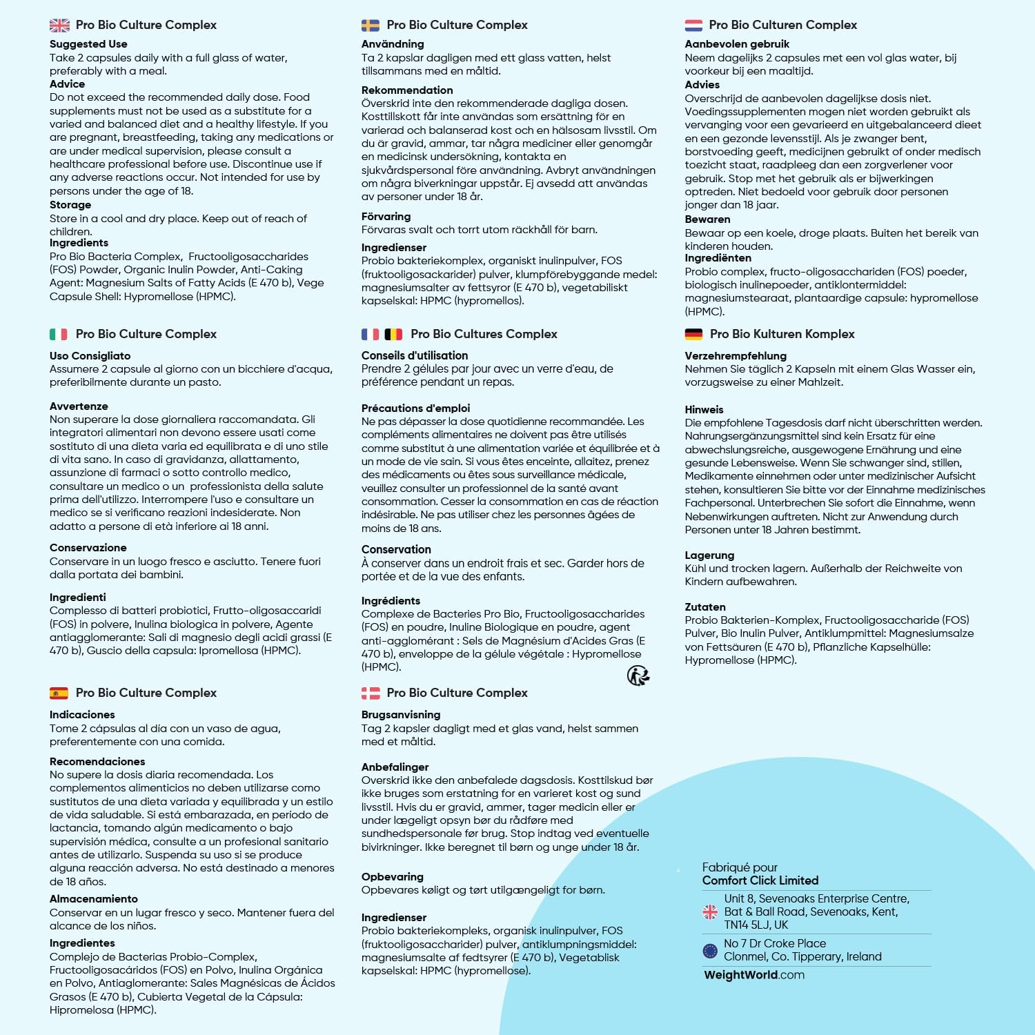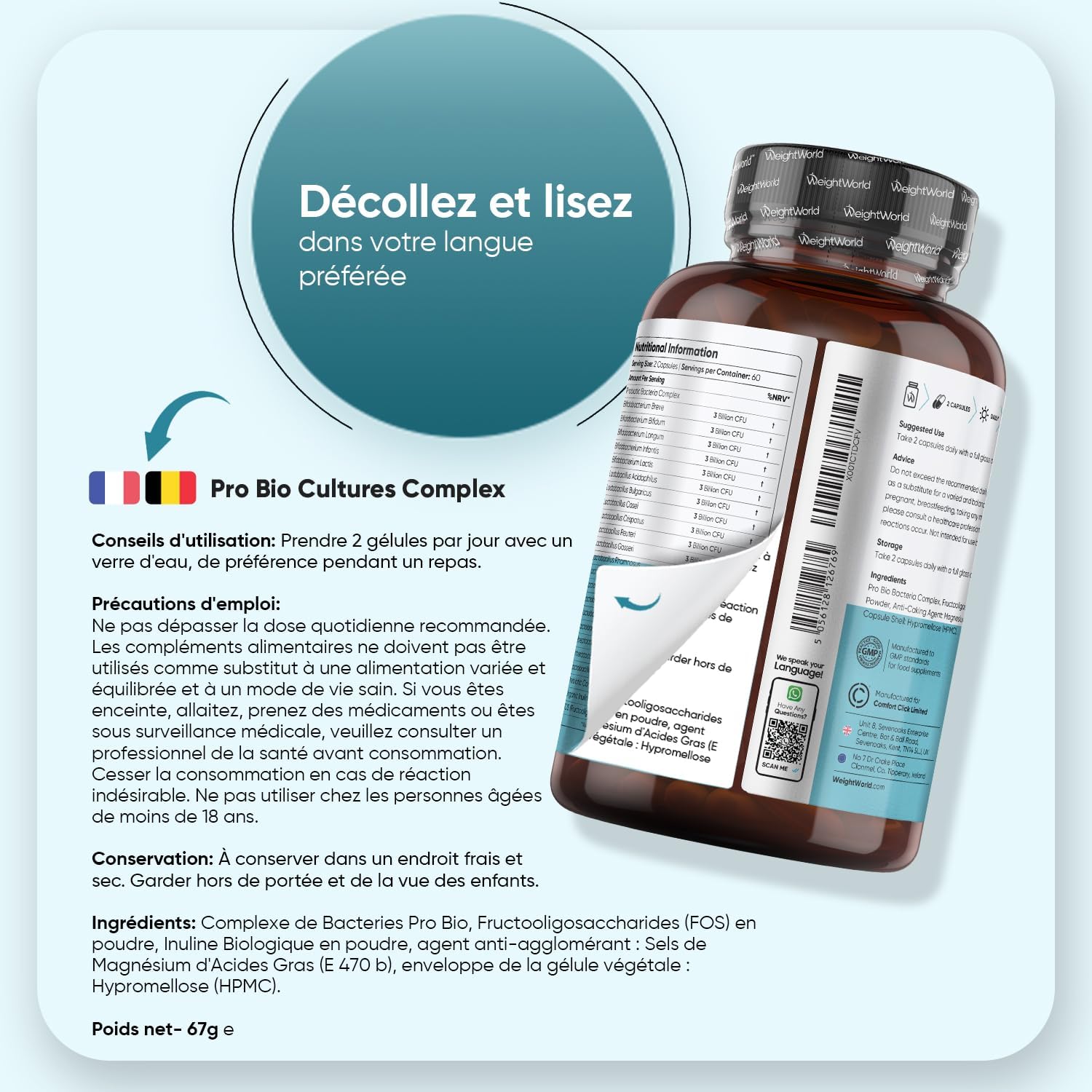 60 Billion CFU – WeightWorld Prebiotic and Probiotic Supplement contains 120 capsules that provide 60 billion CFU per day. Probiotic and prebiotic capsules are composed of 20 strains of bacteria: Lactobacillus Acidophilus, Lactobacillus Reuteri, Lactobacillus Gasseri, Lactobacillus Rhamnosus, Lactobacillus Plantarum.