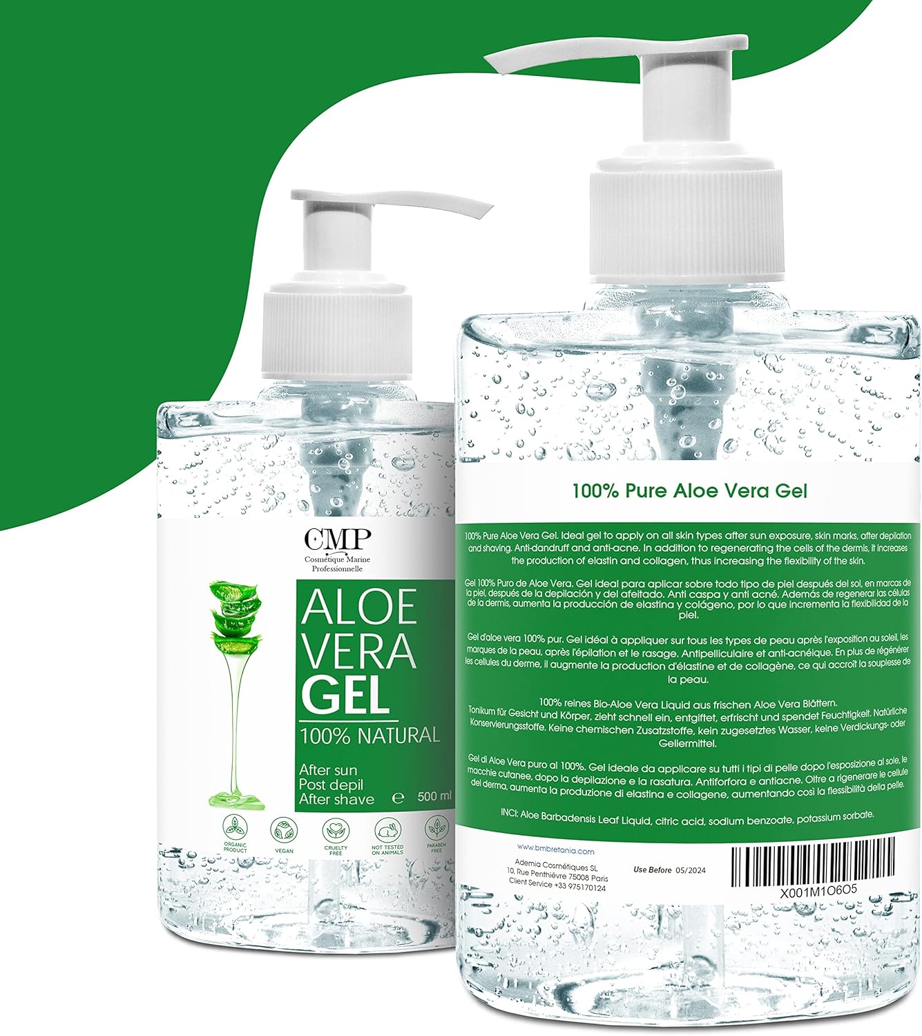 Produit professionnel de haute qualité. L’aloe barbadensis de Bleu Marine Bretania a une teneur élevée en vitamines (vitamines A, C, E, B1, B2, B3, B6, B12) et en antioxydants. L’aloe vera est donc le meilleur ami de la peau en matière de soins et d’hydratation (skincare). Composé d’ingrédients naturels : épaississant d’algues (extrait d’algues) : Absorption 6 fois plus profonde.