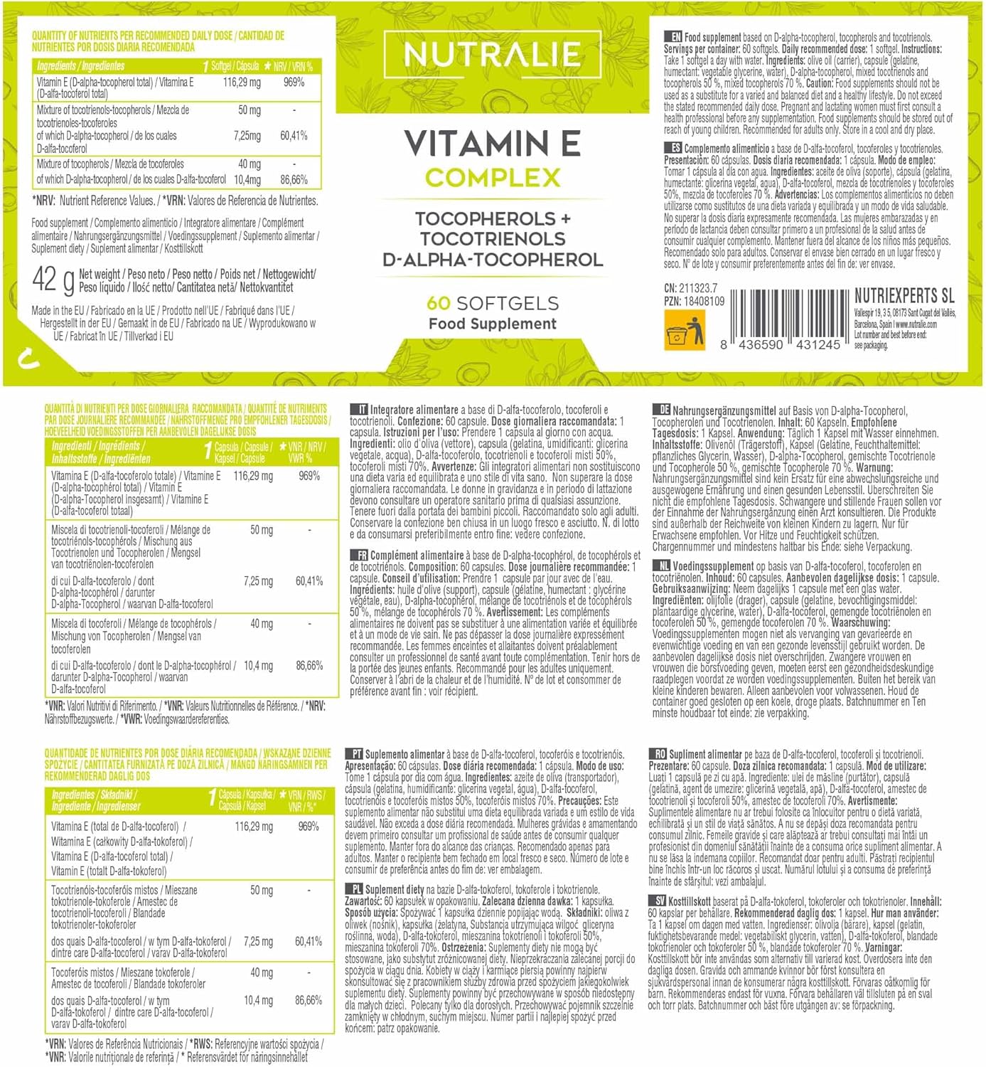 TOCOTRIENOLS AND TOCOPHEROLS MIX: Vitamin E Complex from Nutralia contains a blend of 50 mg of Tocotrienols and Tocopherols, 7.25mg of which are D-Alpha-Tocoferol.