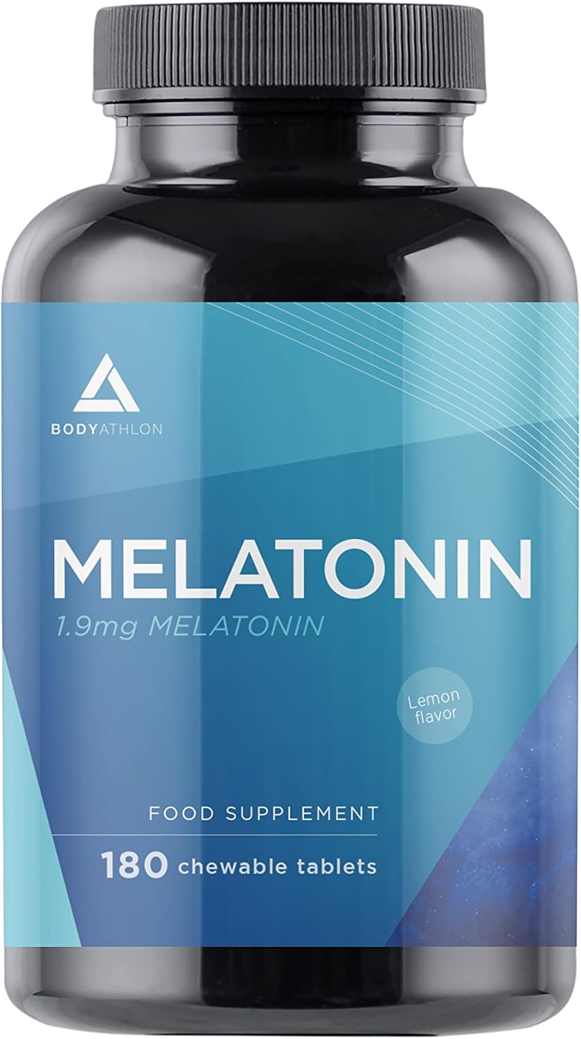 Pure Melatonin Strong 1.9mg- 180 Chewable Tablets for 180 Nights- Sleep Quickly – Prevents Insomnia- Jet and Jet Lag- Melatonin 1.9mg – Lemon- Bodyathlon