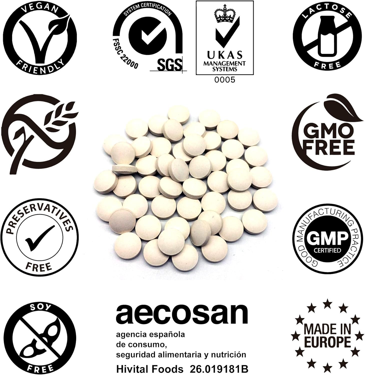 Made in Europe according to good manufacturing practices (GMP) and ISO. Hivital Foods is registered in AESAN under number 26.019181B.