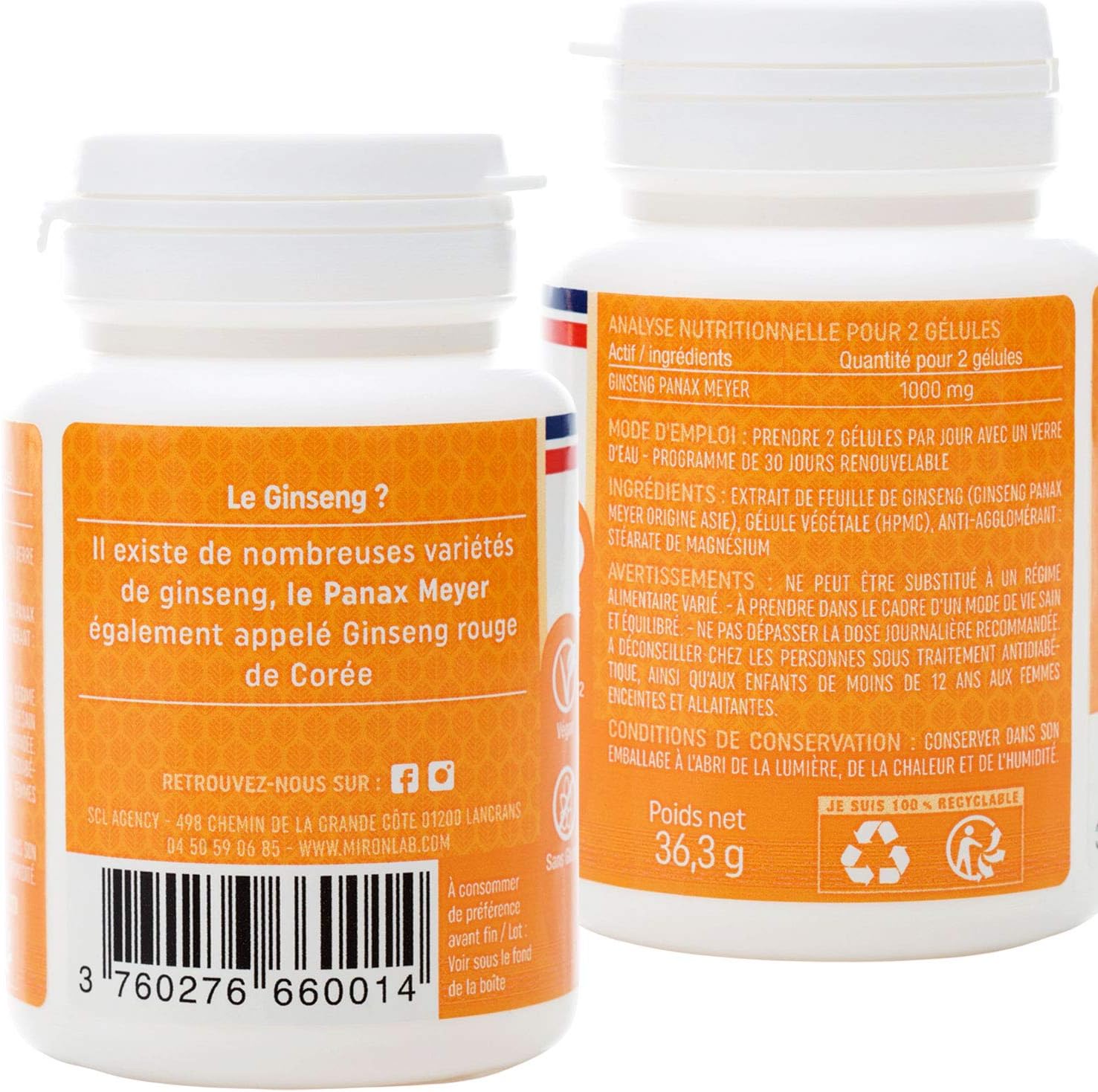 Red Korean Ginseng Root – High Dosage 1000mg – Ginsenosides 12.5mg – 120 Capsules / 2 Months – Natural Extract Panax Meyer – Anti Stress & Energy Booster – French Laboratory MIRONLAB