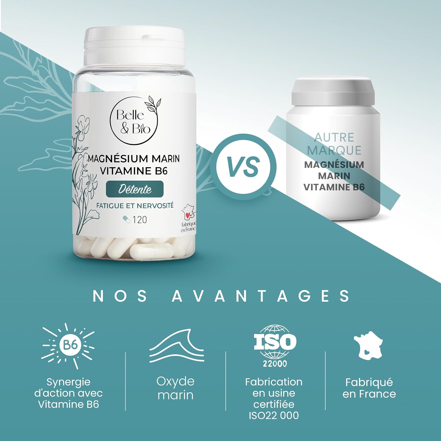 ✓ Made in France. Our Magnesium Marin-Vitamin B6 capsules are made in France. This allows us to guarantee you strict compliance with the regulations, standards and labels in force