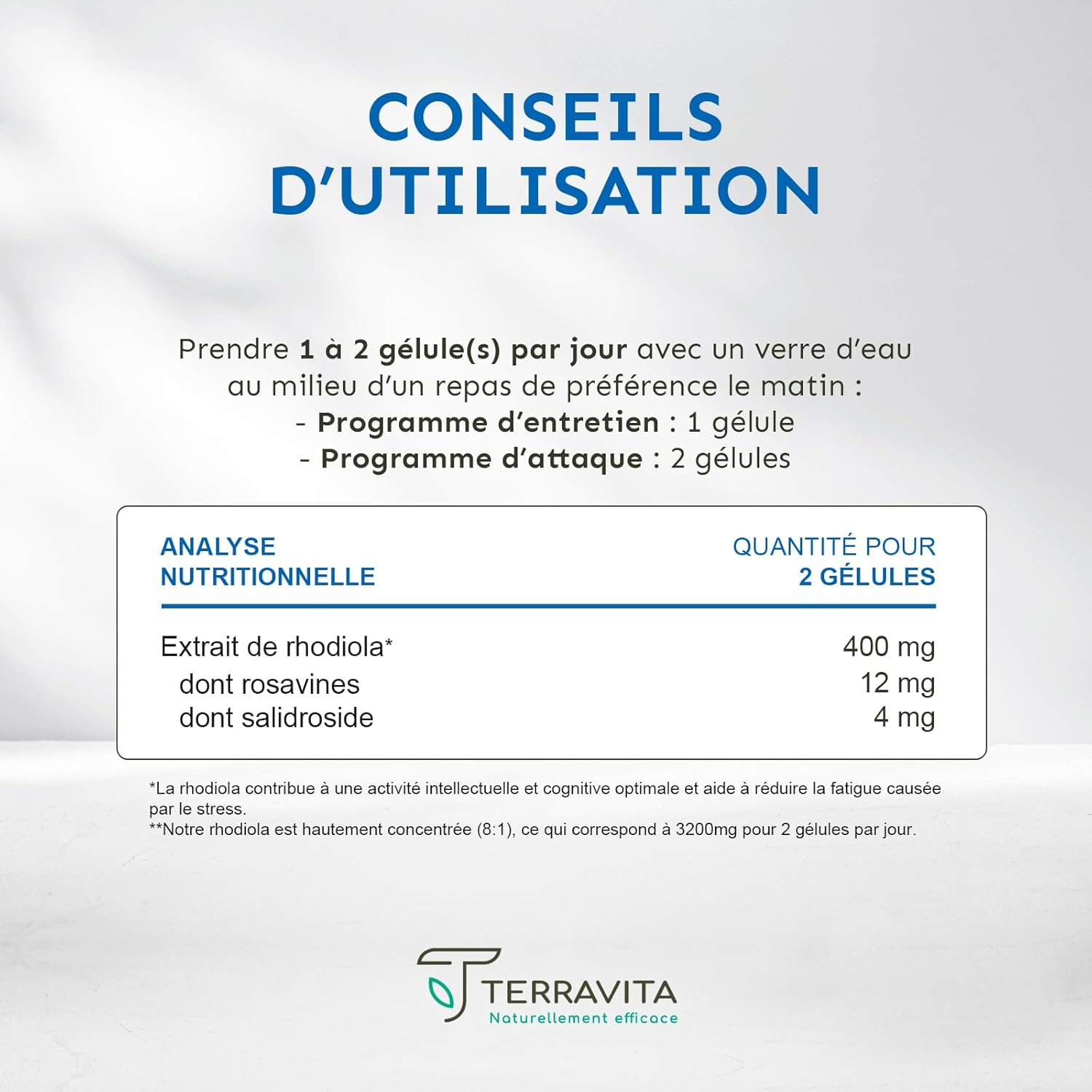 ✅ CUSTOMER SATISFACTION ●● Our rhodiola extract is packaged in France. Your satisfaction is our top priority. Do not hesitate to contact us, our team of nutritionists and experts will be happy to offer you personalized assistance. Suitable for a vegan diet.