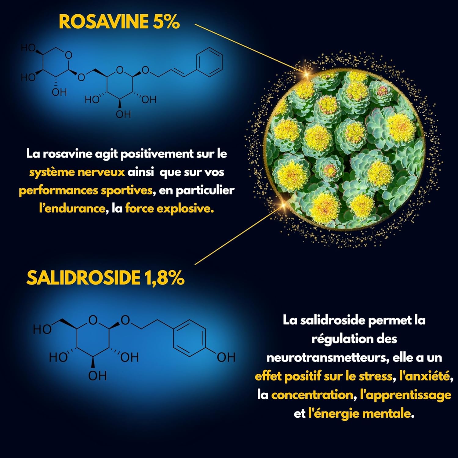 💪Athletes 💪Rhodiola offers adaptogenic properties, particularly beneficial for athletes, by reducing the perception to exercise it allows you to surpass yourself, in addition it helps to manage stress, benefit from better mental energy, increase your concentration and improve your physical abilities.
