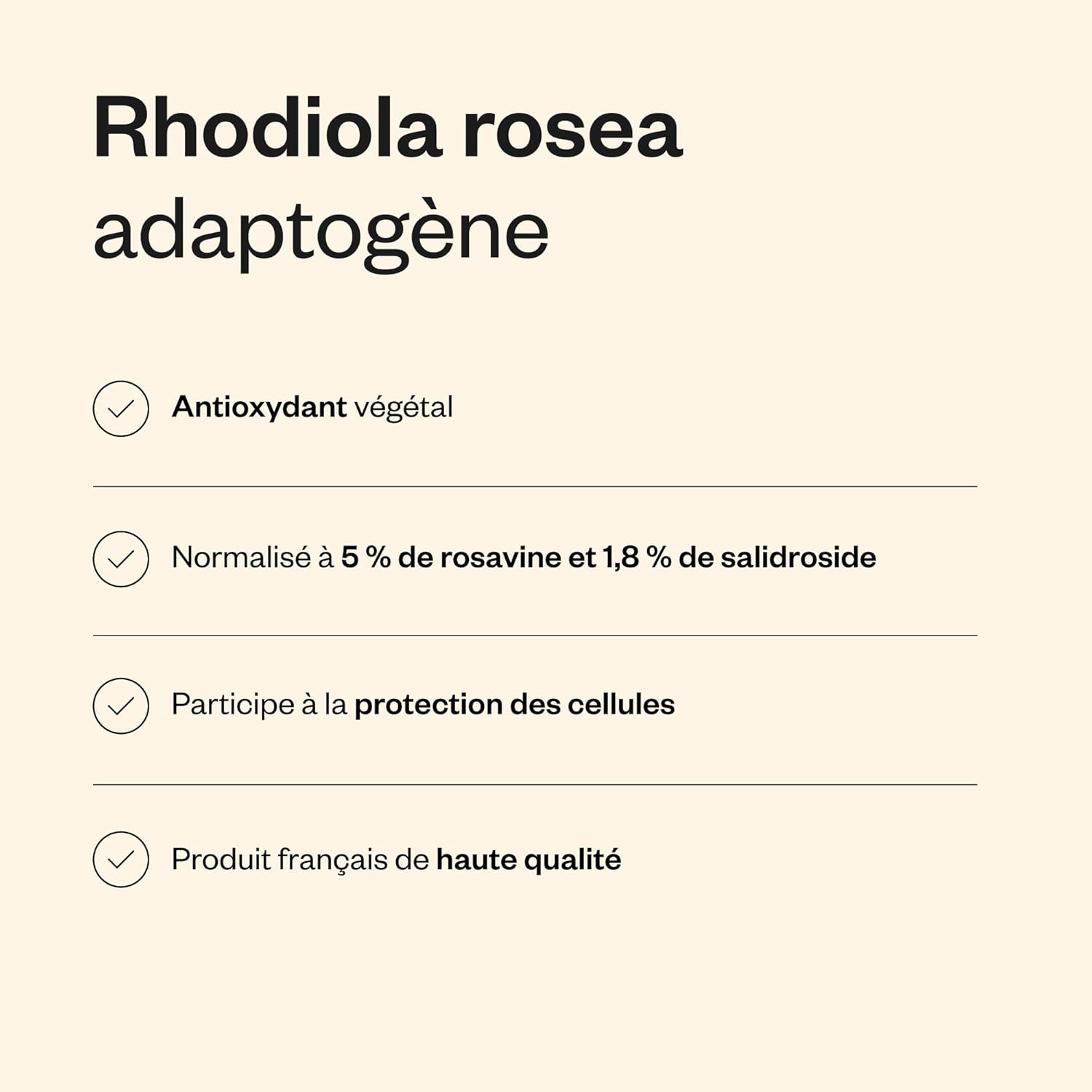 ANTI-STRESS NATURAL: Unlike many supplements, Rhodiola is standardized to 5% rosavin and 1.8% salidroside, the active substances of rhodiola, to maximize the benefits of the adaptogen plant. Its powerful action relieves situations of stress and fatigue, allowing to significantly increase intellectual work abilities.