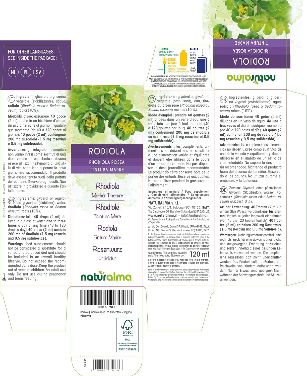 Rhodiole or Pink Stonecrop (Rhodiola rosea or Sedum roseum) roots Mother tincture concentrated extract 1:10. 100% Natural, no alcohol and no added sugars. Made in Italy.