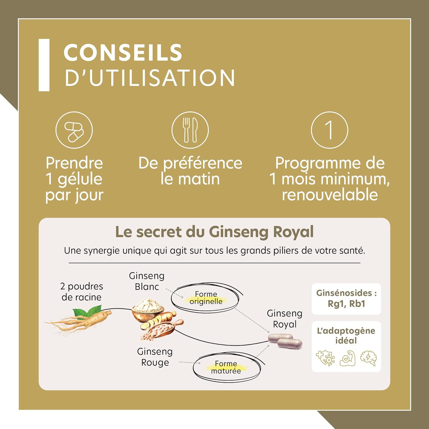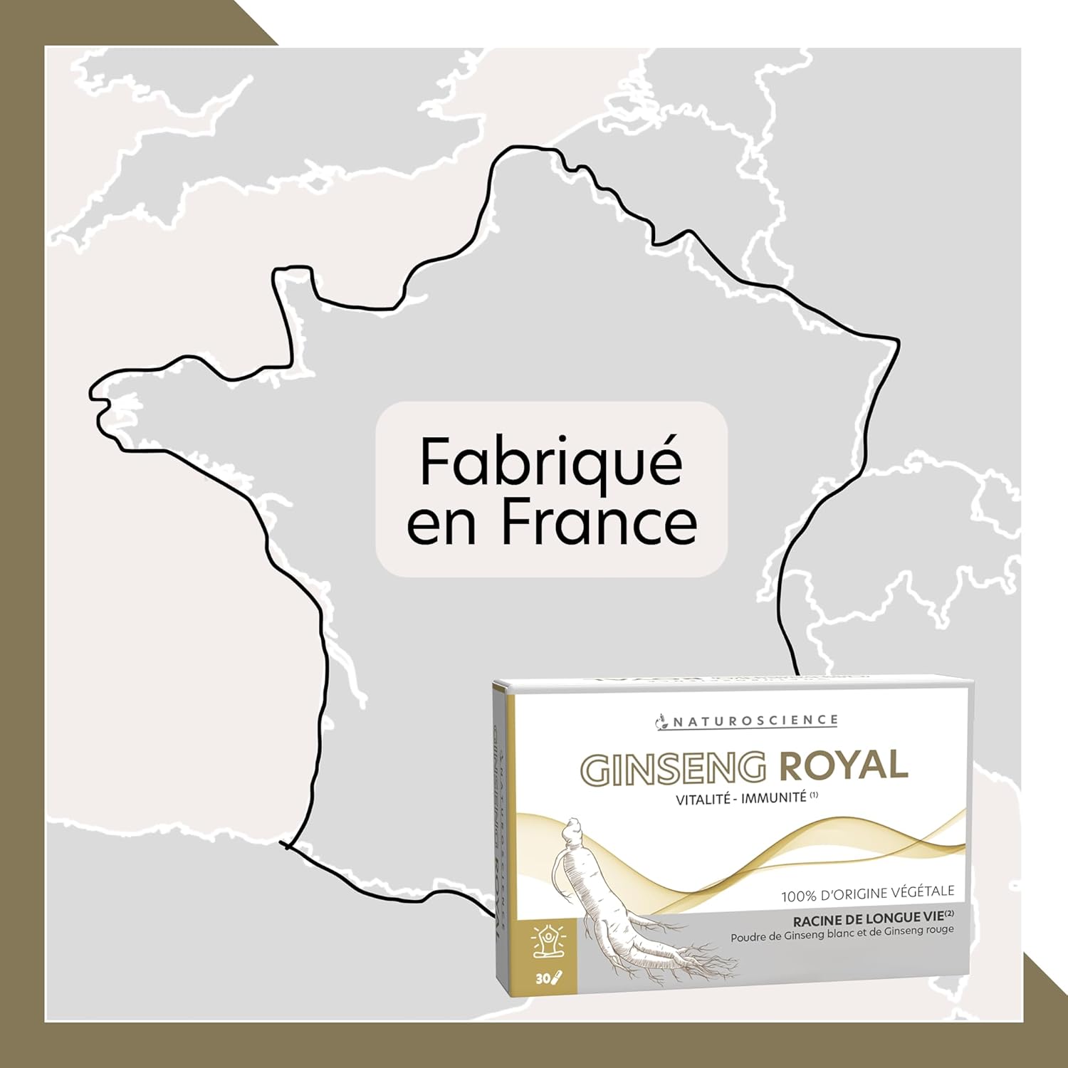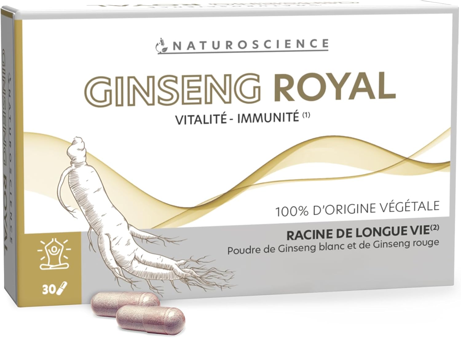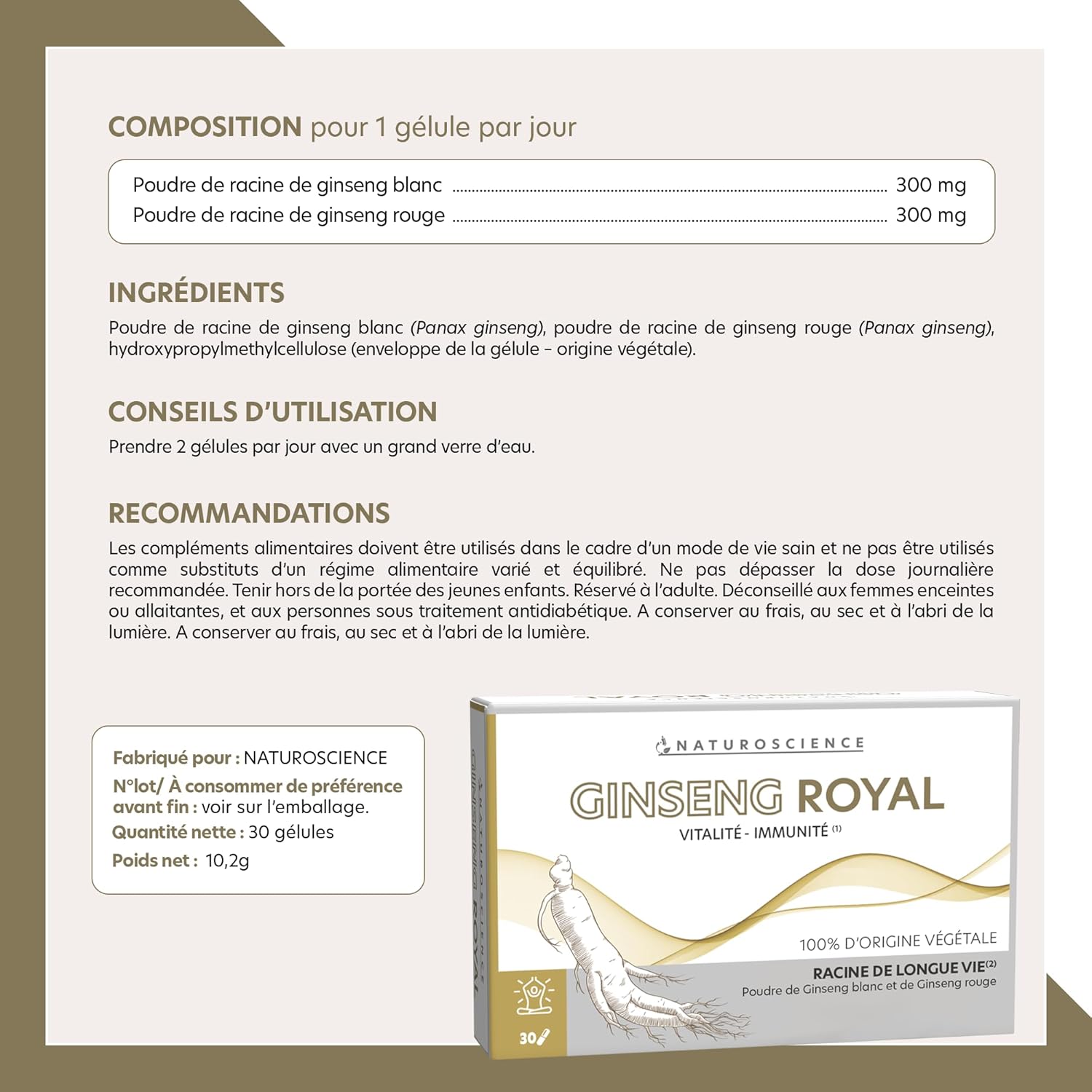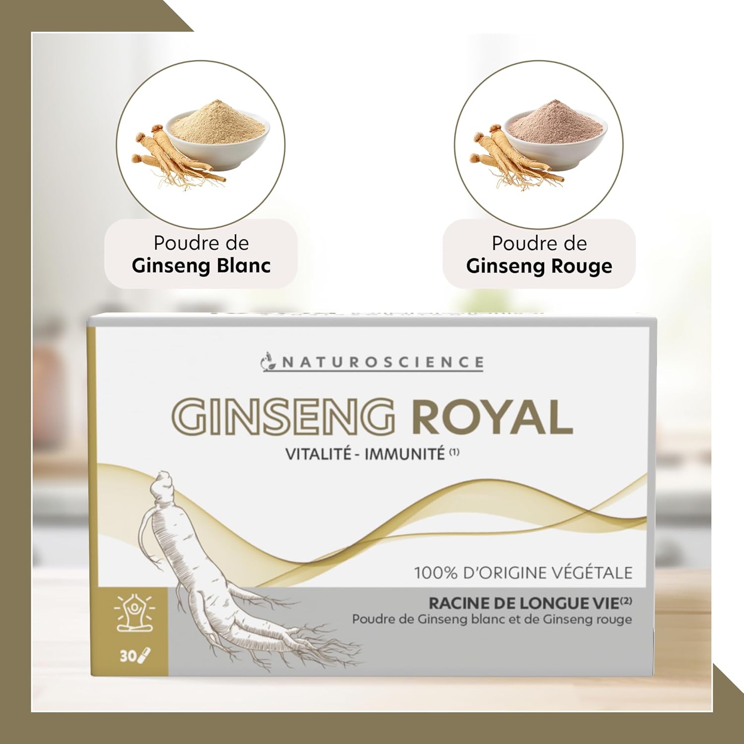 Royal Ginseng – Immunity and Vitality Supplement – 100% Natural – Pure White and Red Ginseng Powder – Made in France – 30 Capsules