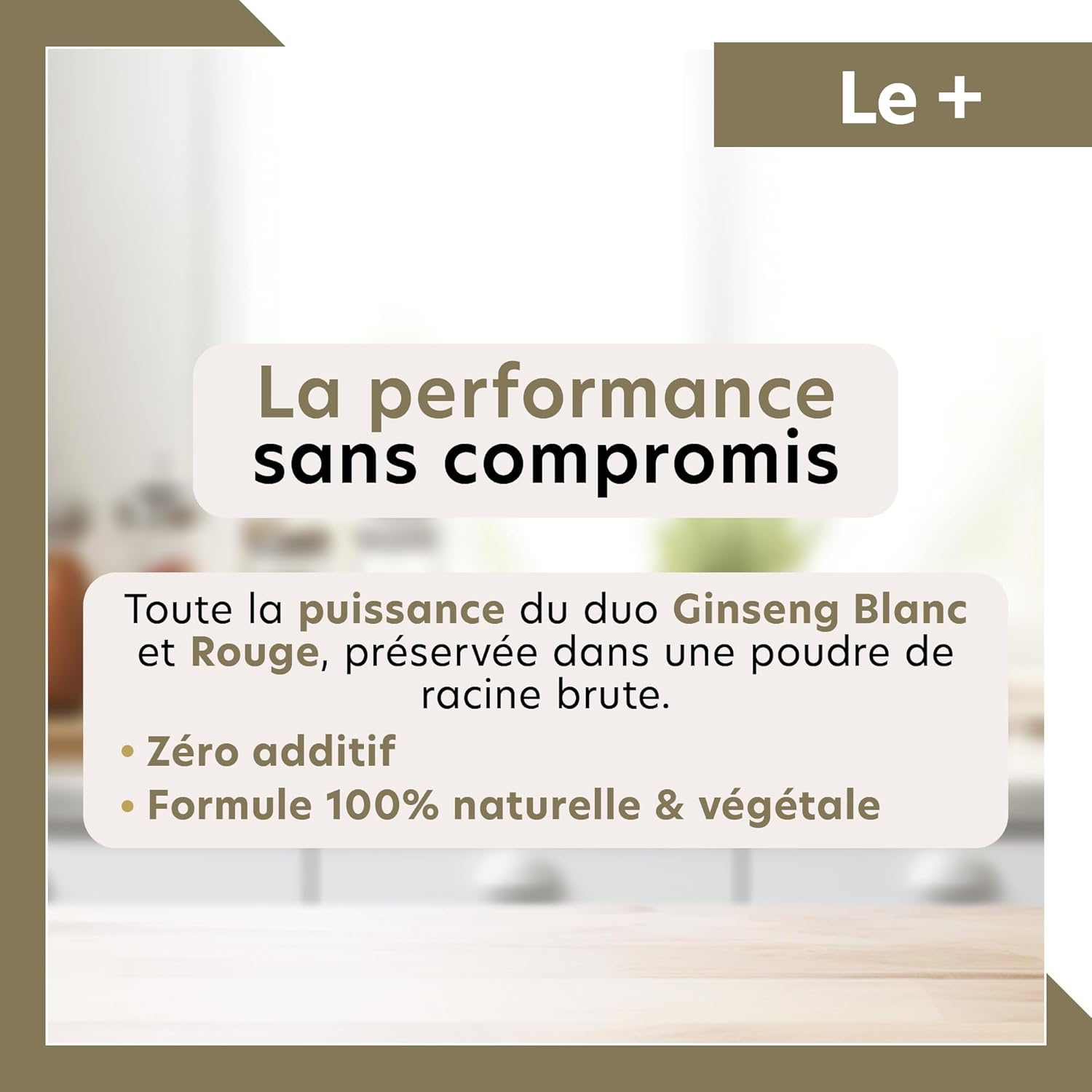 PURE AND HISTORICAL GINSENG ROOT POWDER: Nicknamed Long Life Root, ginseng is one of the most widely used plants in the world. To enhance its benefits, we chose pure ginseng root powder rather than an extract: it retains all the active ingredients of the plant, for more complete and lasting effects.