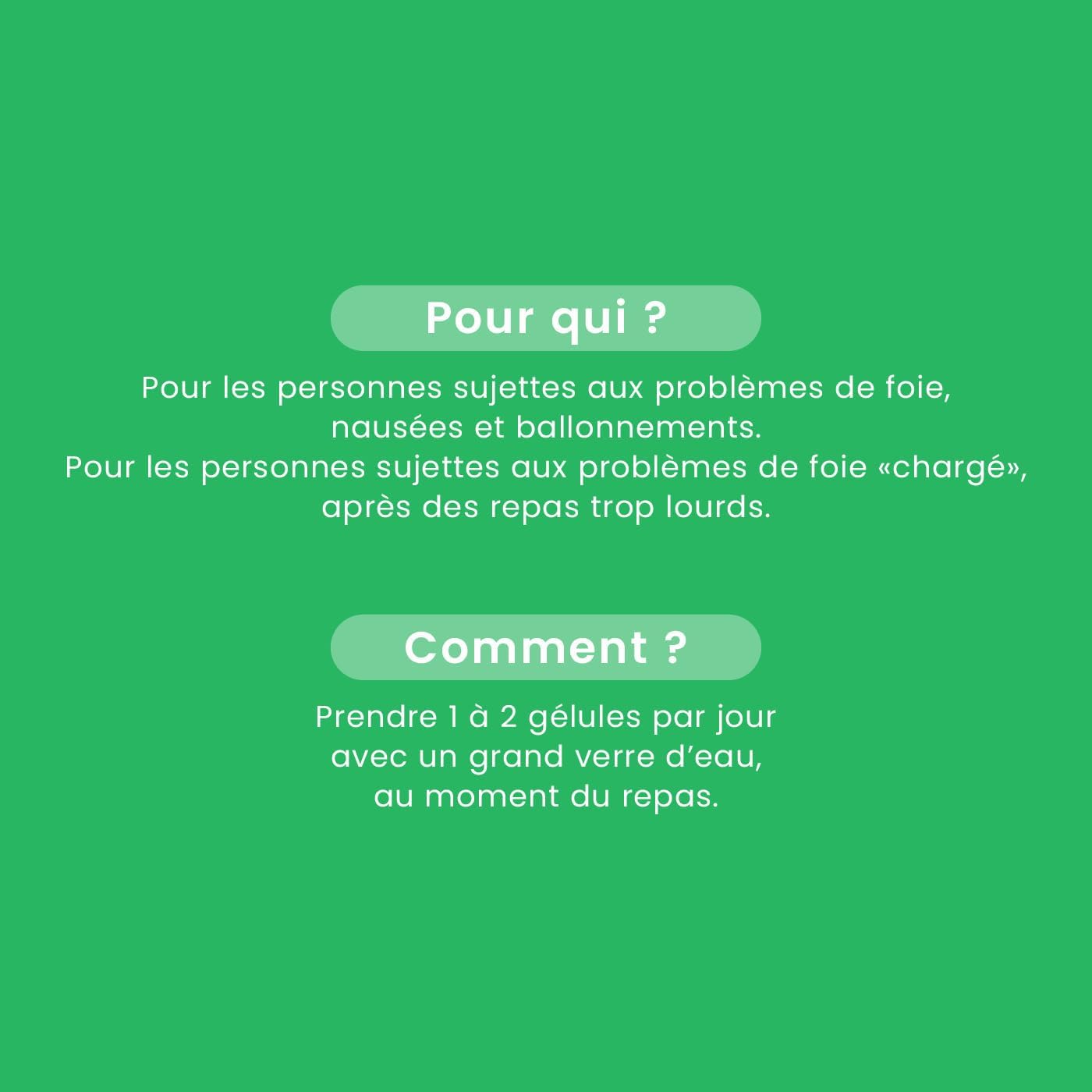 GLOBAL DRAINING AND ANTI-OXIDANT ACTION ON THE LIVER. Our detox & digestion Bien-Etre du Foie Bio food supplement is perfect for liver attacks, nausea, bloating or even the aftermath of celebrations and meals too heavy