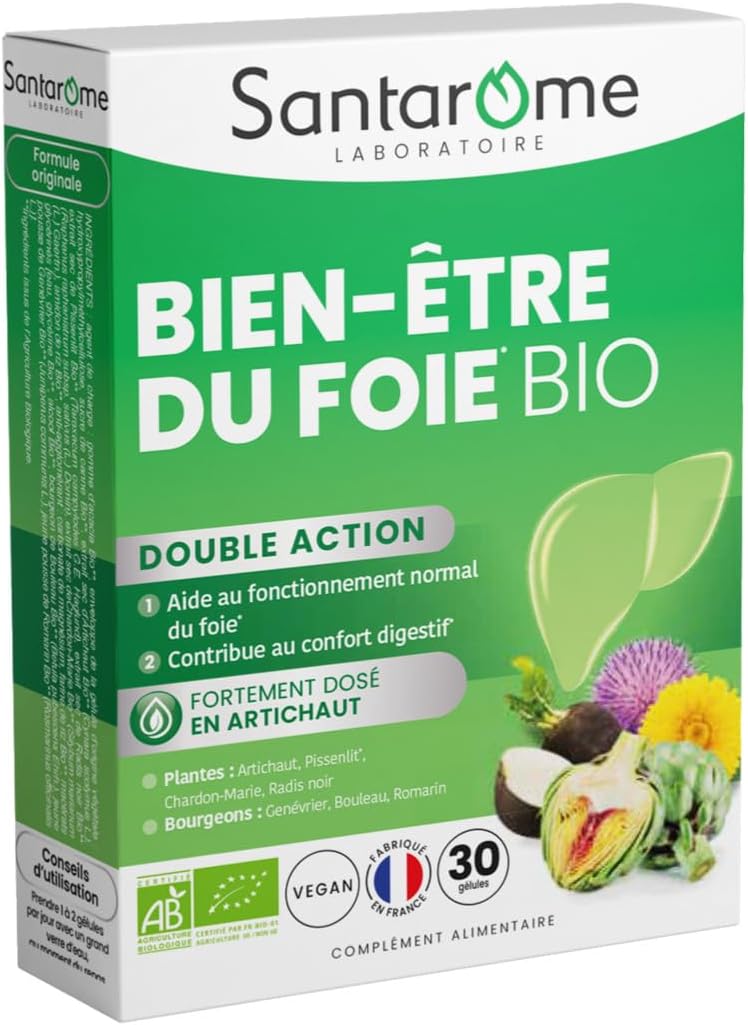 Santarome Bio – Liver Wellness | Digestion Food Supplement | Draining & Anti-Oxidating Action – Herbal – Artichoke, Black Radish | 30 Capsules | Vegan |Made In France