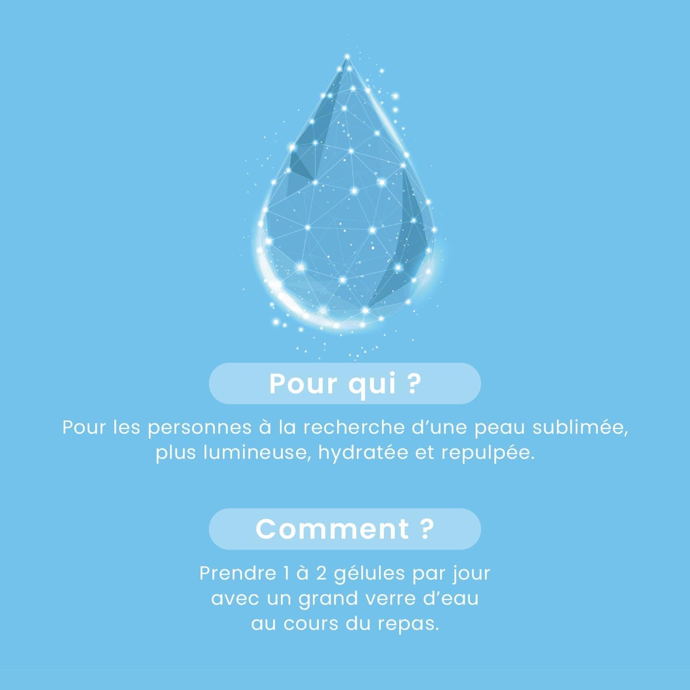 HIGHLY DOSEED FORMULA: Our product is strongly dosed in Hyaluronic Acid (400 mg per day) for targeted action on hydration! Hyaluronic Acid can retain up to 1000x its weight in water!
