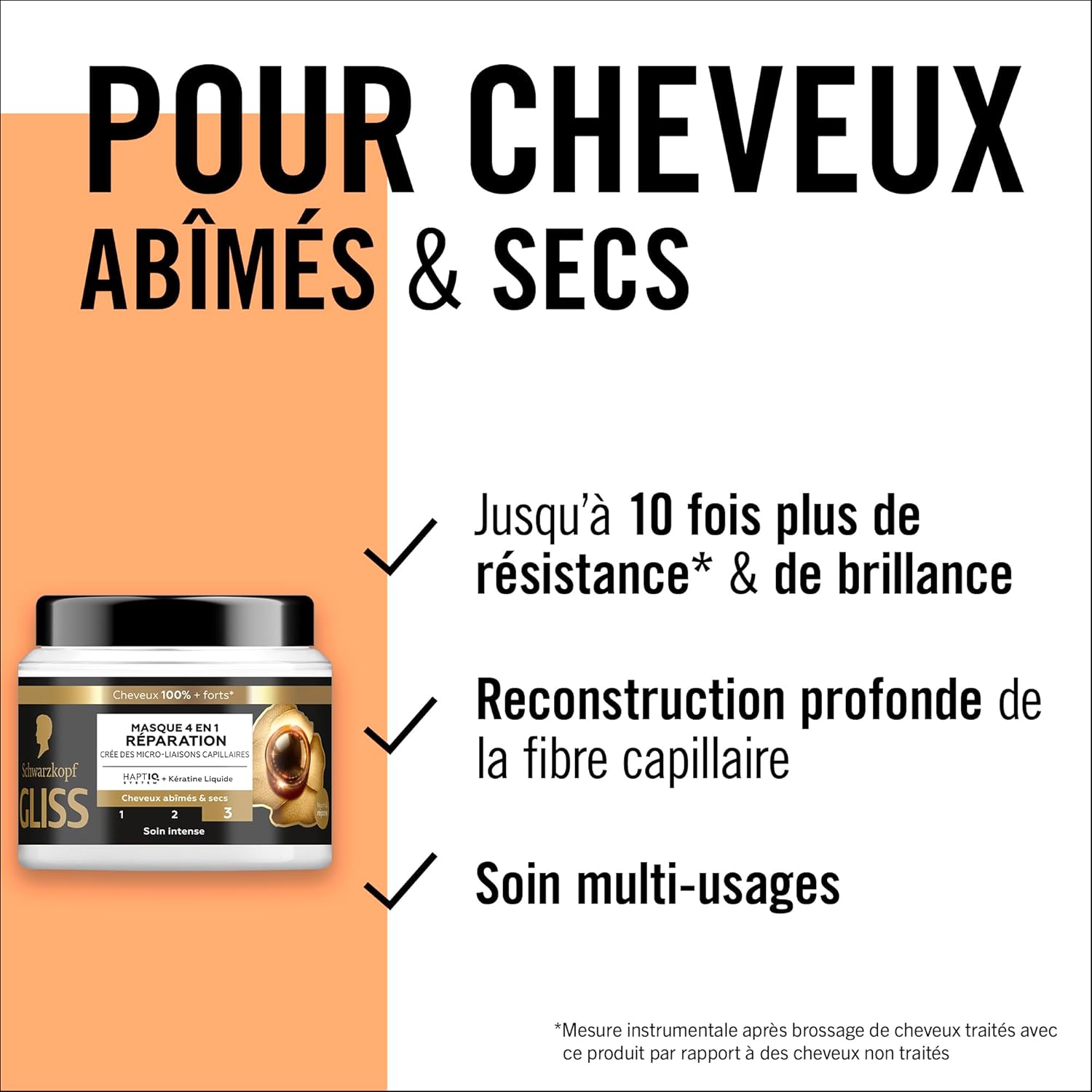Schwarzkopf – GLISS – 4-in-1 Mask – Repair – Liquid Keratin – Haptiq System – Creates Hair Micro-Bonds – Damaged and Dry Hair – Intense Care – Nourishes & Repairs – 400 ml