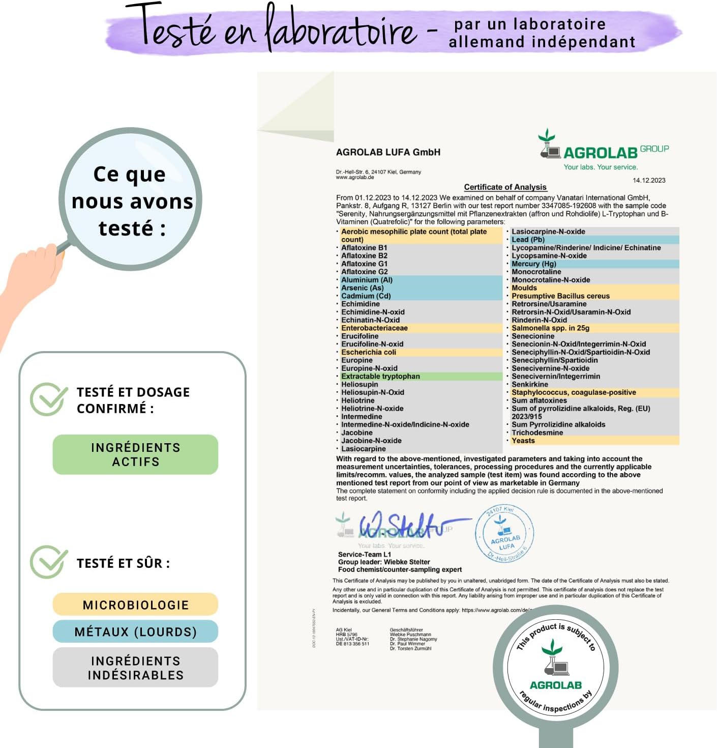 LABORATORY TESTED: Our Serenity capsules are produced to the highest HACCP quality standards. In order to ensure optimal quality, we test our capsules not only for microbial impurities like other suppliers, but also for heavy metal residues and active ingredients. Of course, our product is free of GMOs, any additives and is suitable for vegans. Per box: 90 capsules. Recommended dosage: 2 capsules per day.
