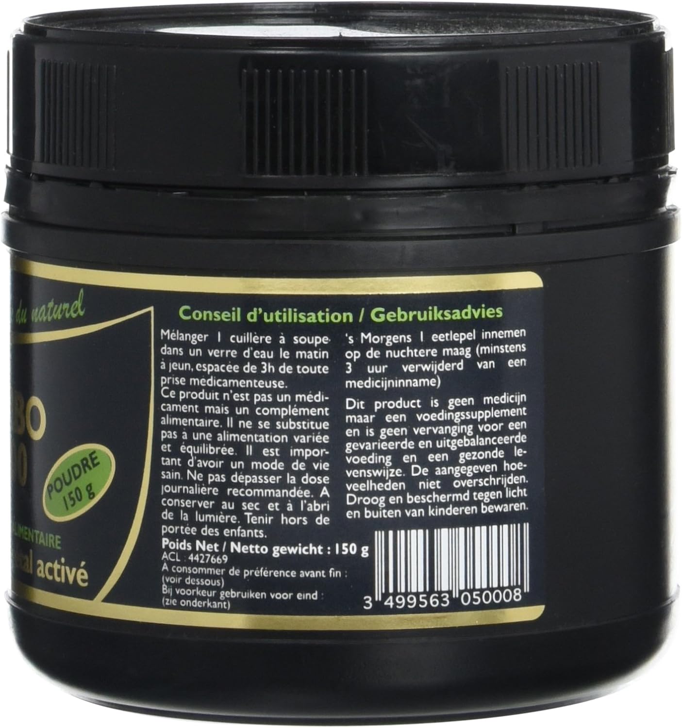 Je ne mets que 4 étoiles sur 5 à cause de la coloration noire intense qui tache les mains et le plan de travail :DIl faut donc bien protéger le plan de travail avant la manipulation et se laver les mains plusieurs fois ou mettre des gants…Produit naturel et hyper efficace pour les problèmes intestinaux, de l’estomac… Prendre une cuillère à soupe de charbon végétal dans un grand verre d’eau de préférence à jeun pour plus d’efficacité et espacer la prise de médicaments minimum 2 à 3 heures après la prise, car le charbon absorbe tout et rendrait la pilule ou autre traitement inefficace 😉 Pour une cure c’est en général 10 à 15 jours et il faut boire beaucoup d’eau afin d’aider le charbon à évacuer les toxines de l’organisme…Pour blanchir les dents, contrairement à ce qu’on croit, il ne rend pas les dents blanches, il noircit les gencives donc les dents paraissent plus blanches… Pour cela le plus efficace reste le bicarbonate de soude (mélangé avec du citron encore mieux) sur le dentifrice matin et soir par période de 10 jours (ne pas en abuser cela finirait par attaquer l’émail). 😉