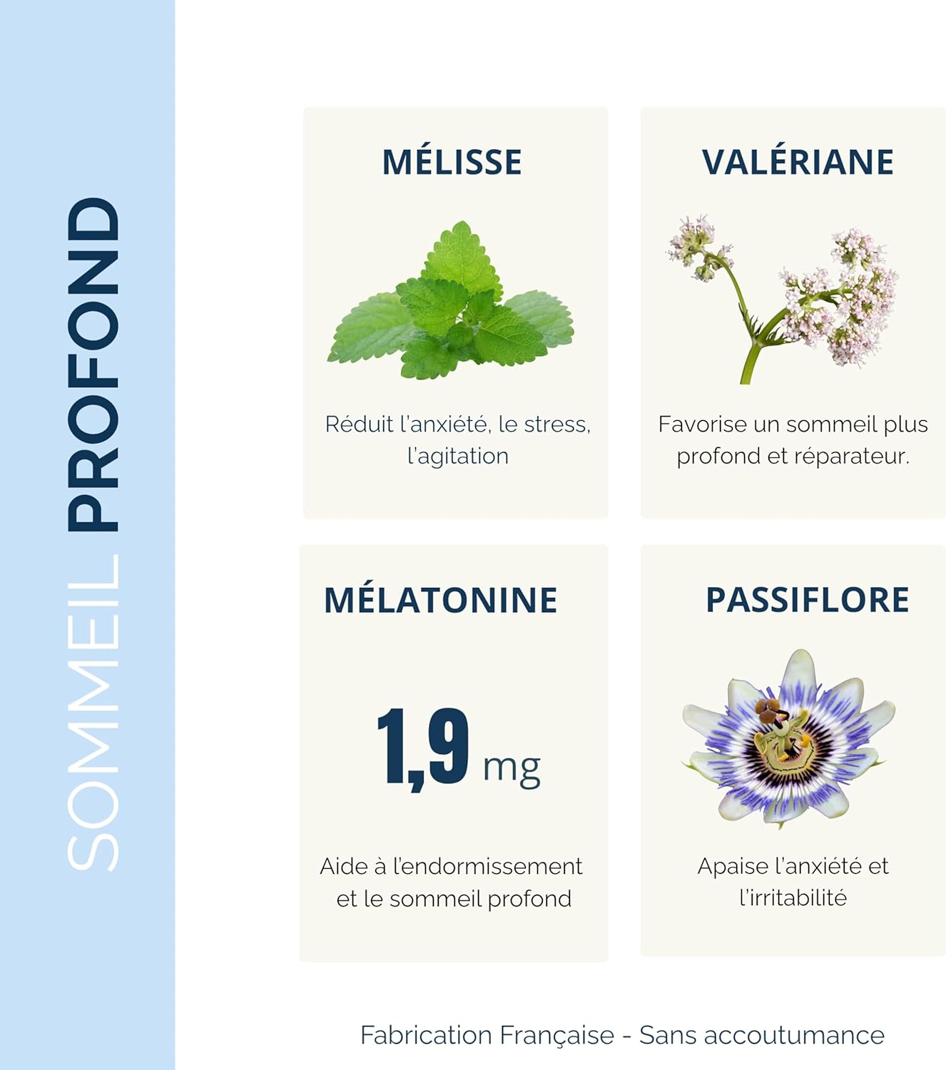 Sleep + Quiet Night | 60 Nights of Deep Sleep | Melatonin 1.9 mg & Plants (Valerian, Passionflower, Lemon Balm, Hops) | Fast Sleep | Made in France | Natural