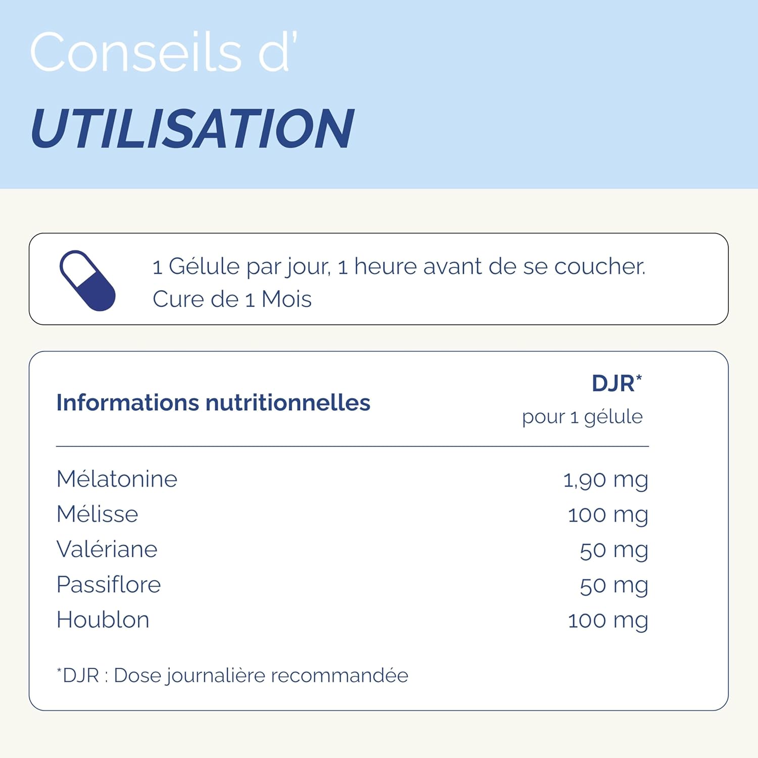 Practical format: Box containing 60 doses for 60 nights of use, allowing a complete treatment of two months to establish a healthy and sustainable sleep routine, with a simple take before bedtime
