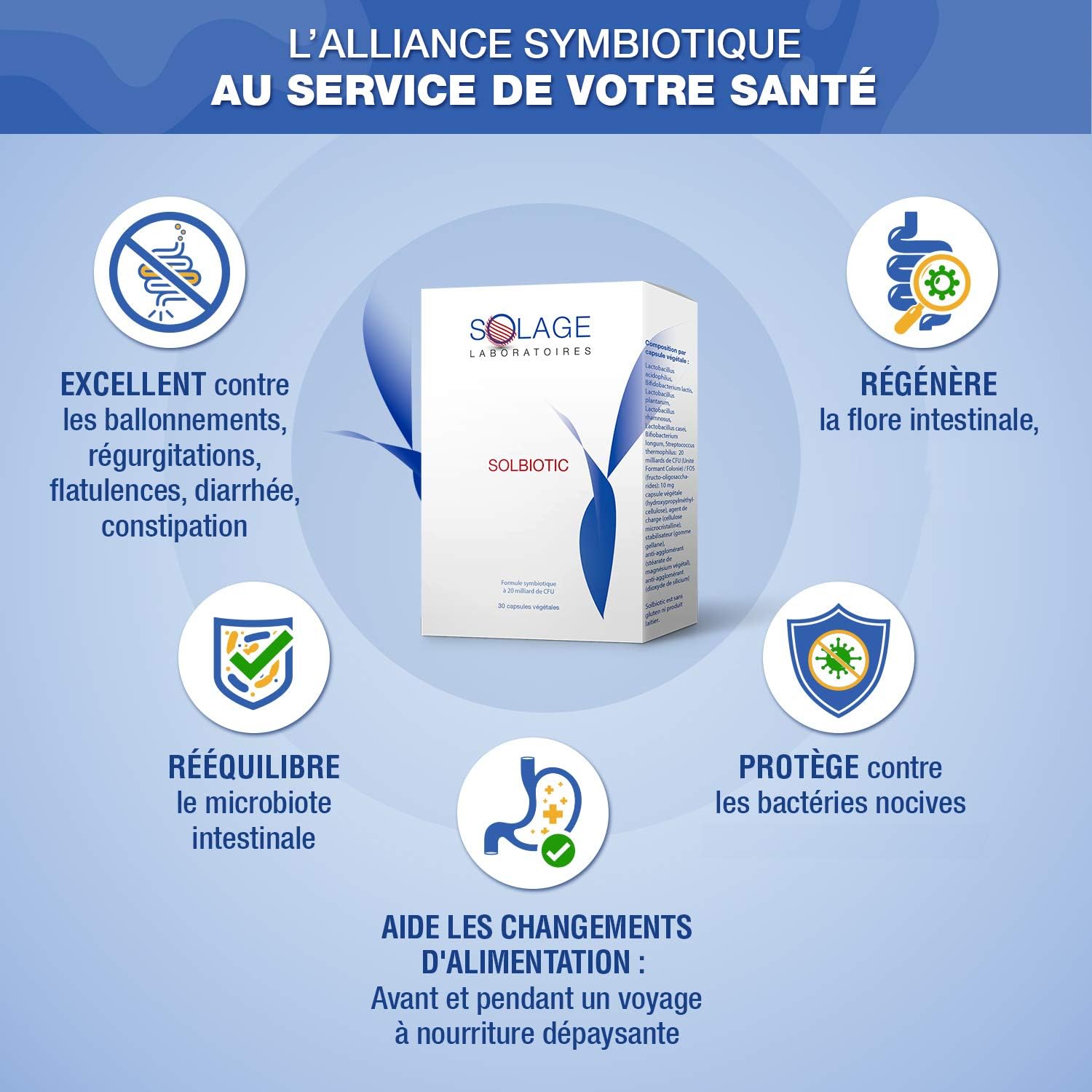 SOLBIOTIC Lactic Bacteria & Prebiotic Cure Intestinal Flora. 20Mds UFC High Activity. 30 Gastro-Resistant Capsules. 1 per day is enough Food Supplement. French Laboratory SOLAGE