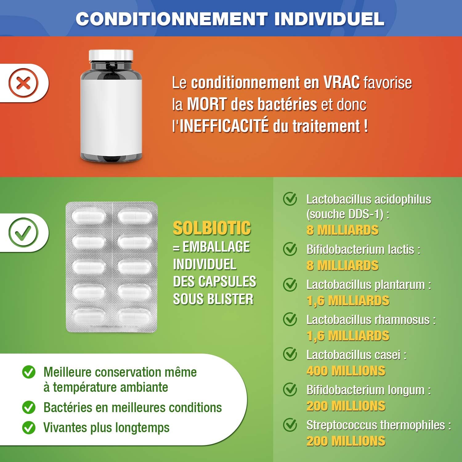 [DO NOT TAKE DEAD BACTERIA] We take special precautions when making SOLBIOTIC, as probiotics must be “alive” when they reach your intestines. Bulk or bottled packaging promotes the death of bacteria, so they are ineffective. SOLAGE has chosen a patented technology guaranteeing individual packaging reinforcing the stability of the strains. Bacteria remain alive and active, even at room temperature.