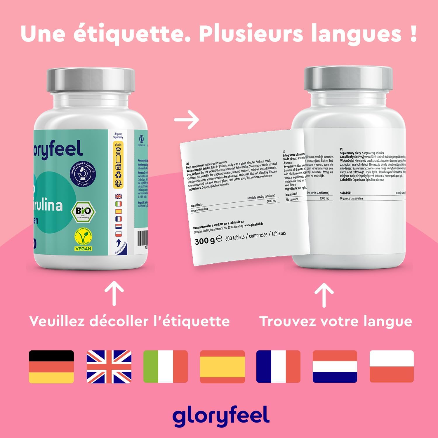Spirulina BIO 600 Tablets 500 mg, 26% Phycocyanin, 3000mg per Dose, Rich in Protein & Antioxidants, Super Essential Food, Highly Dosed, 100% Vegan, No Additives