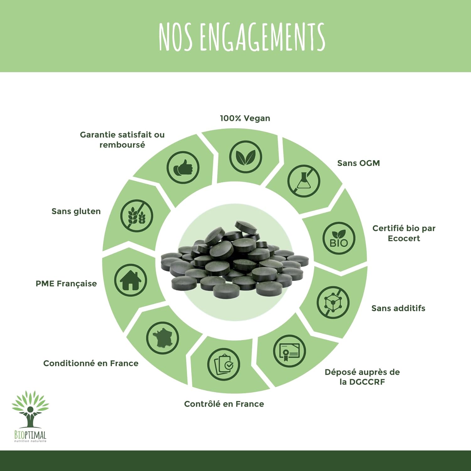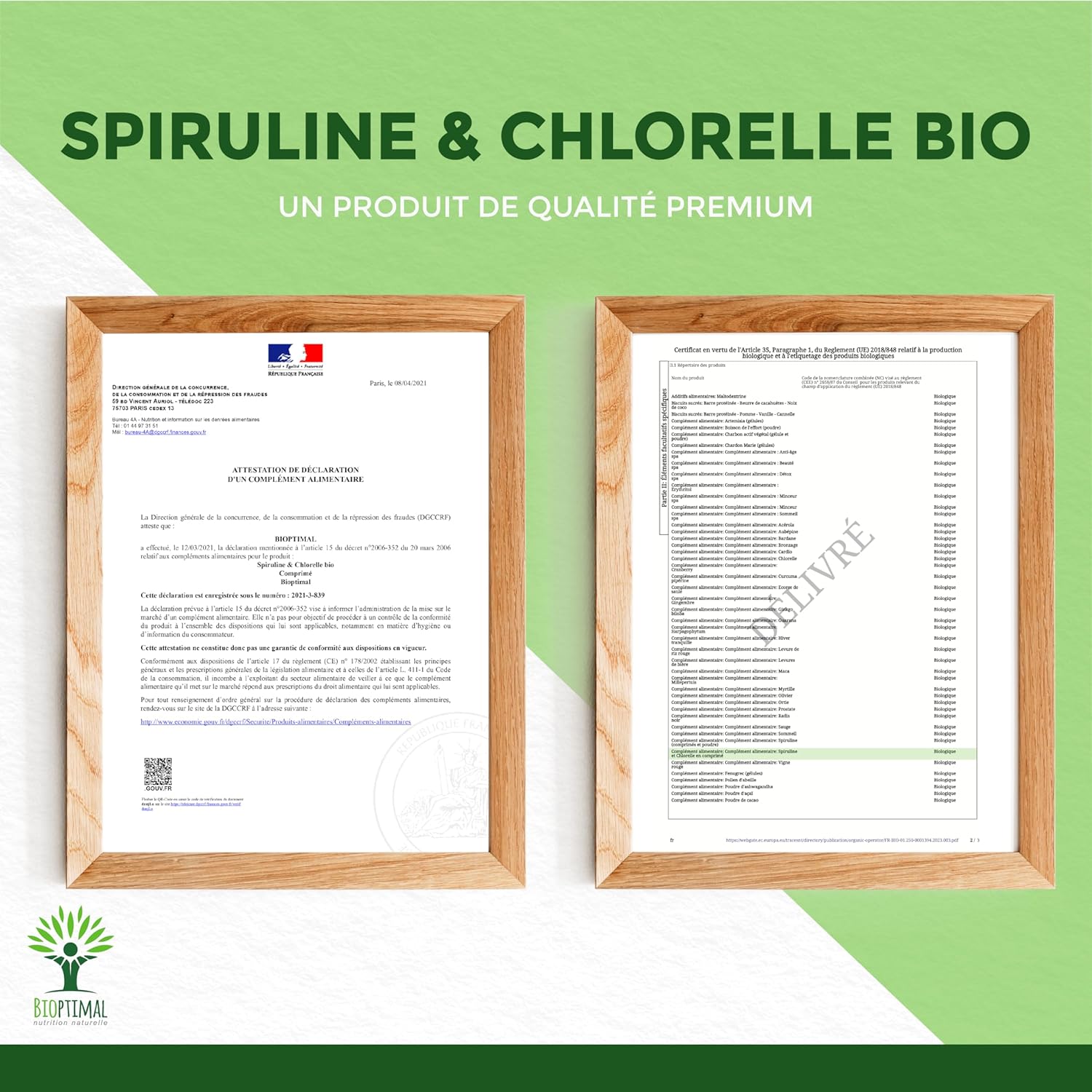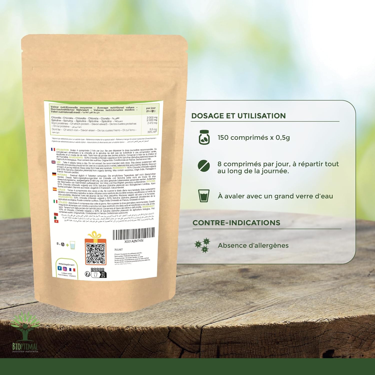 PREMIUM QUALITY + SAFETY: We have selected a chlorella and spirulina of excellent nutritional qualities, which we pack in a resealable bag. Grown in closed ponds with pure water, they are mixed and compacted cold right after harvest. Our formula is guaranteed free of excipients, heavy metals, GMOs, pesticides or gluten, it is checked in our family workshop in France and is certified organic, HACCP + and Afnor.